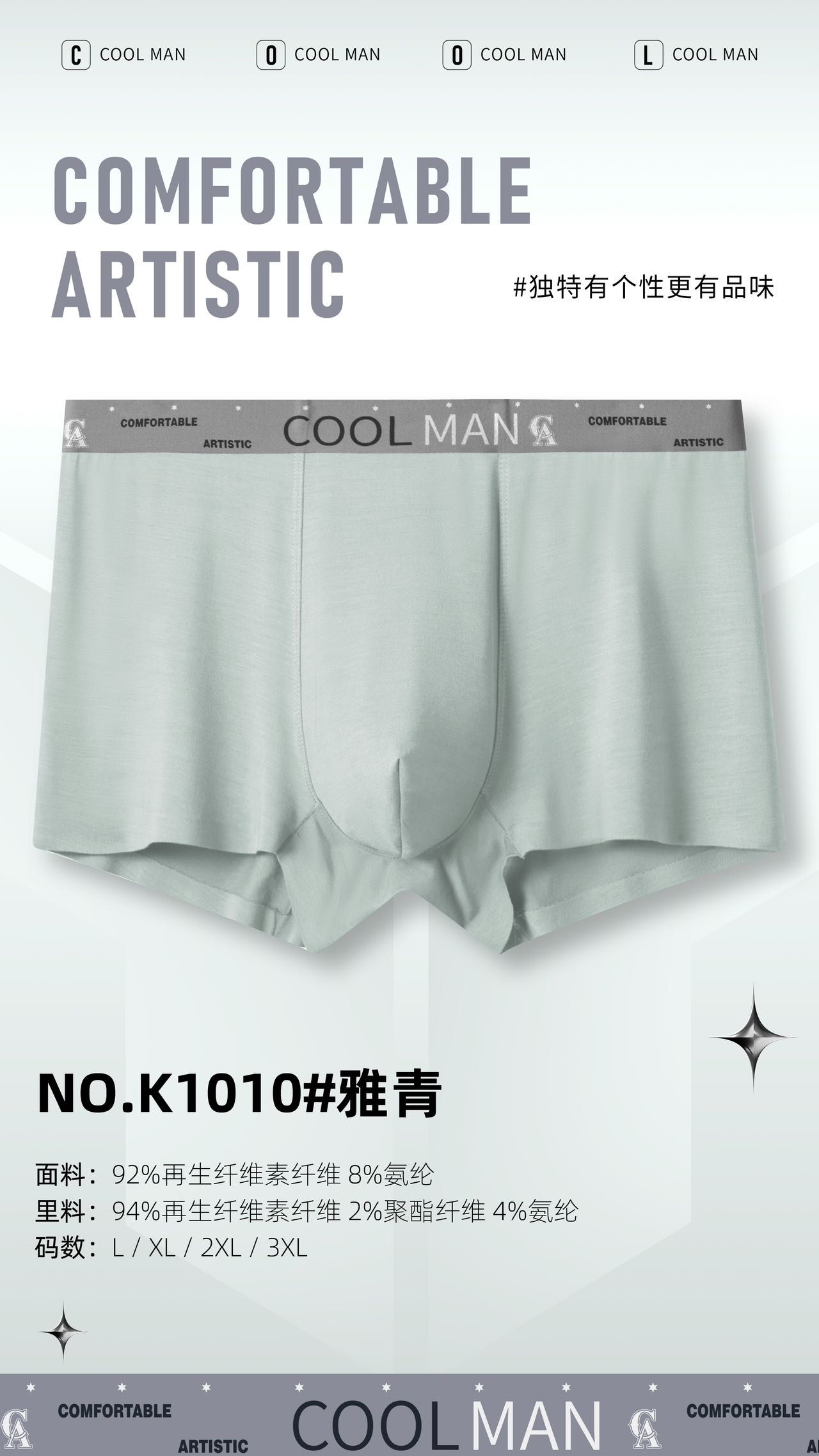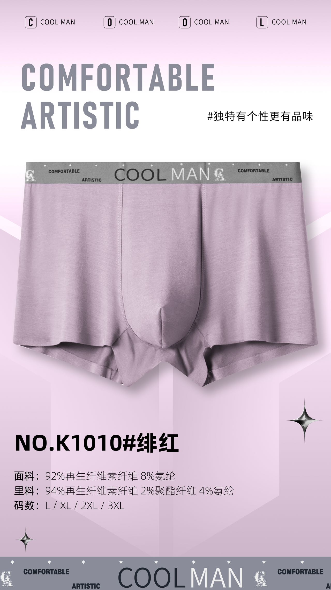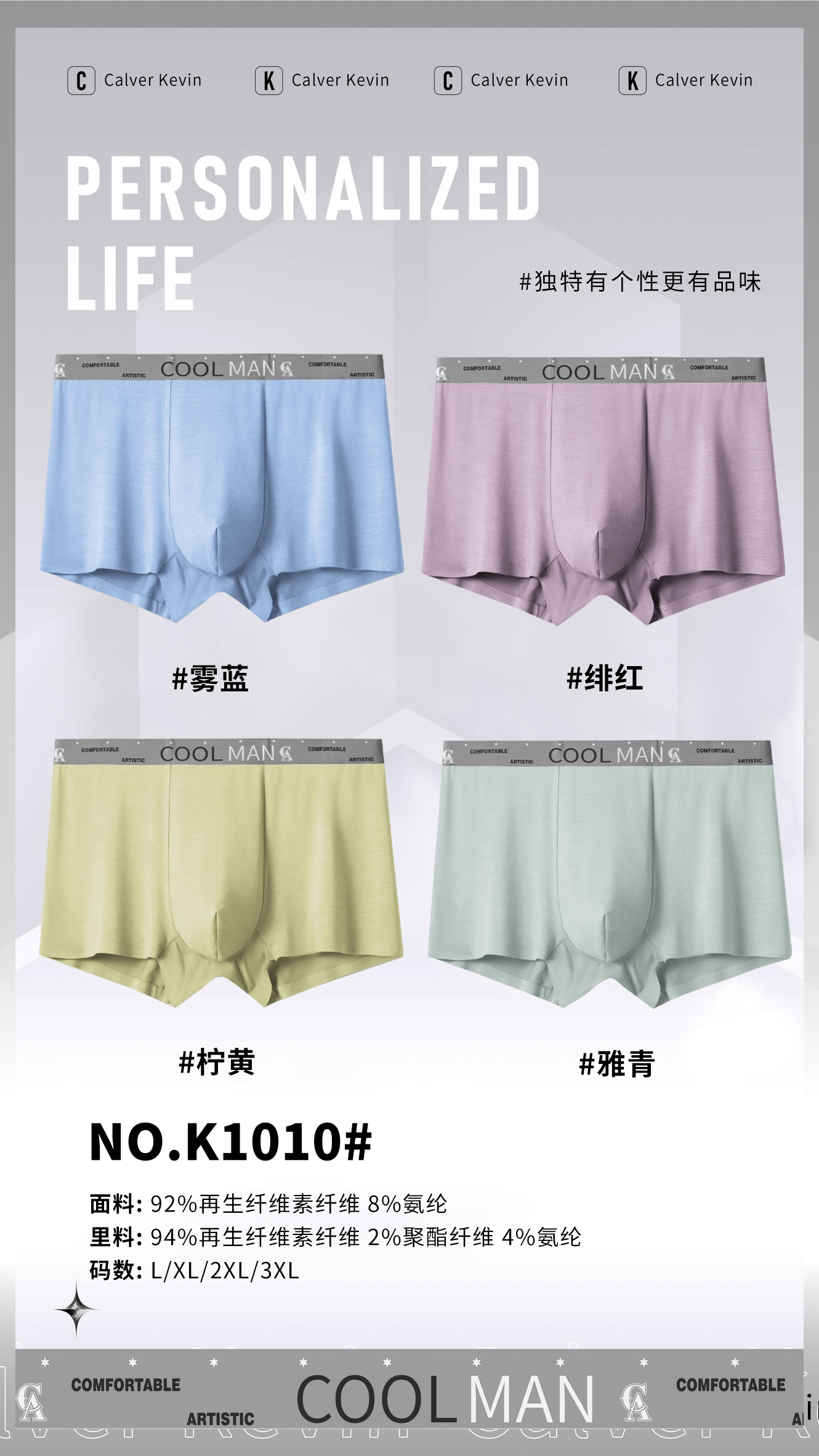 男士50支莫代尔兰精腰头潮趣腰印花无痕平角内裤K1010/1017/1018