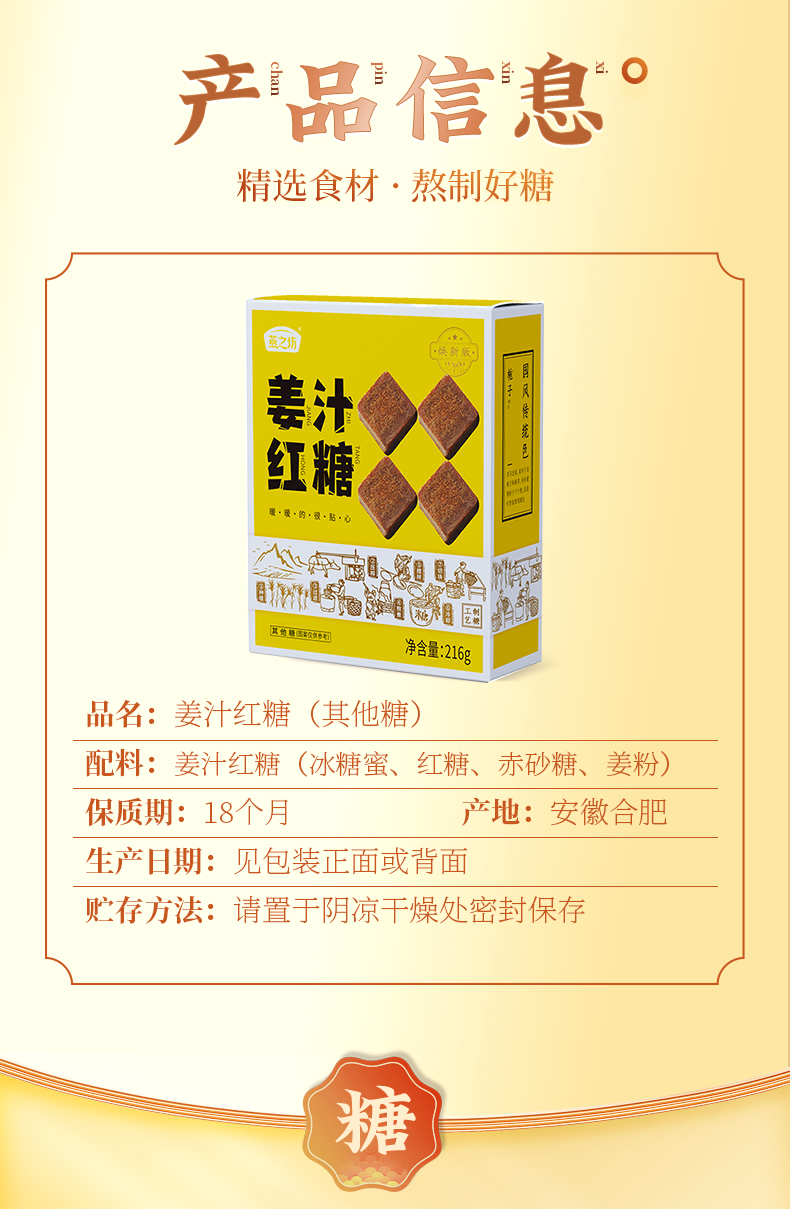 燕之坊 五谷故事 姜汁红糖 盒装红糖216g 0脂肪轻负担 暖心暖身 48小时发货