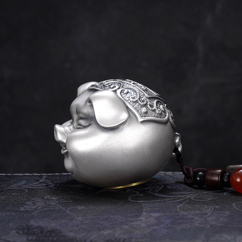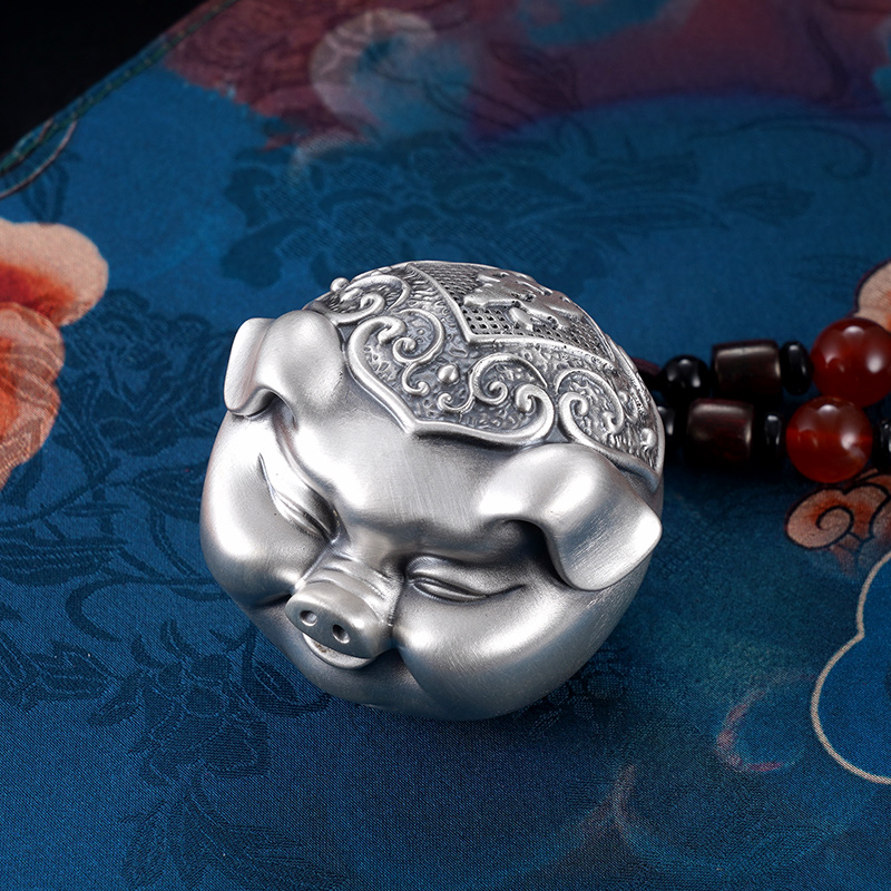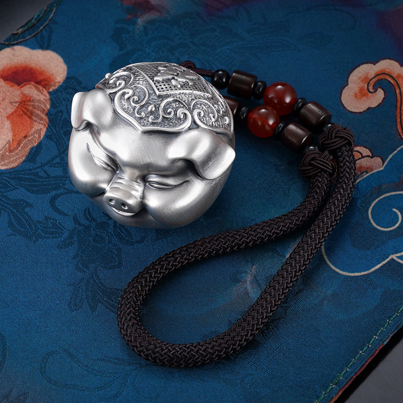 【寓意】:将福猪的形象自然提炼,以手把件的形式呈现。福猪神情憨态祥和,整体浑圆饱满,丰腴可人,寓意招财纳福,祥瑞吉利。