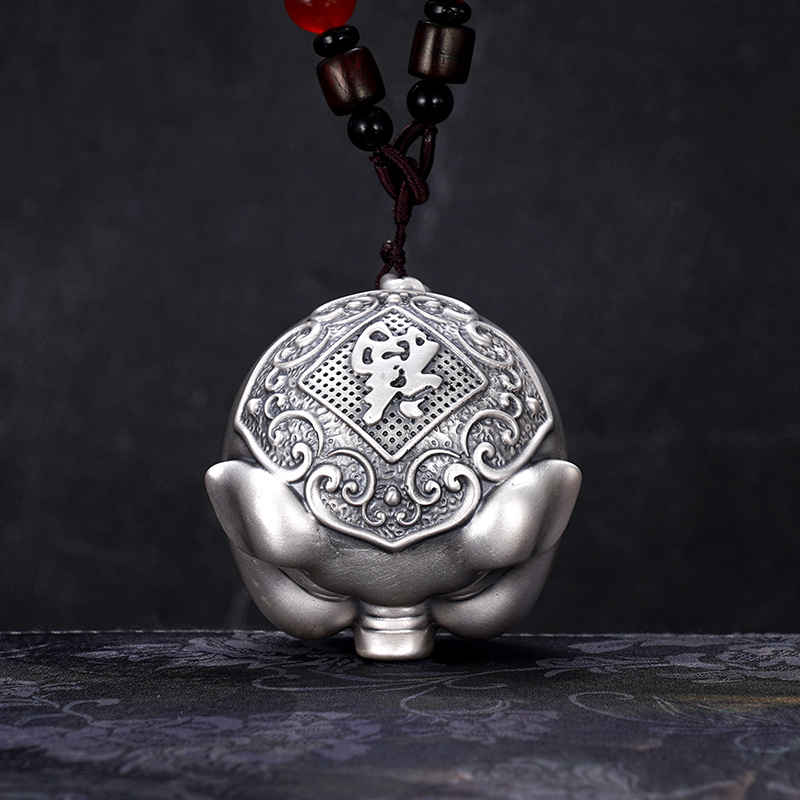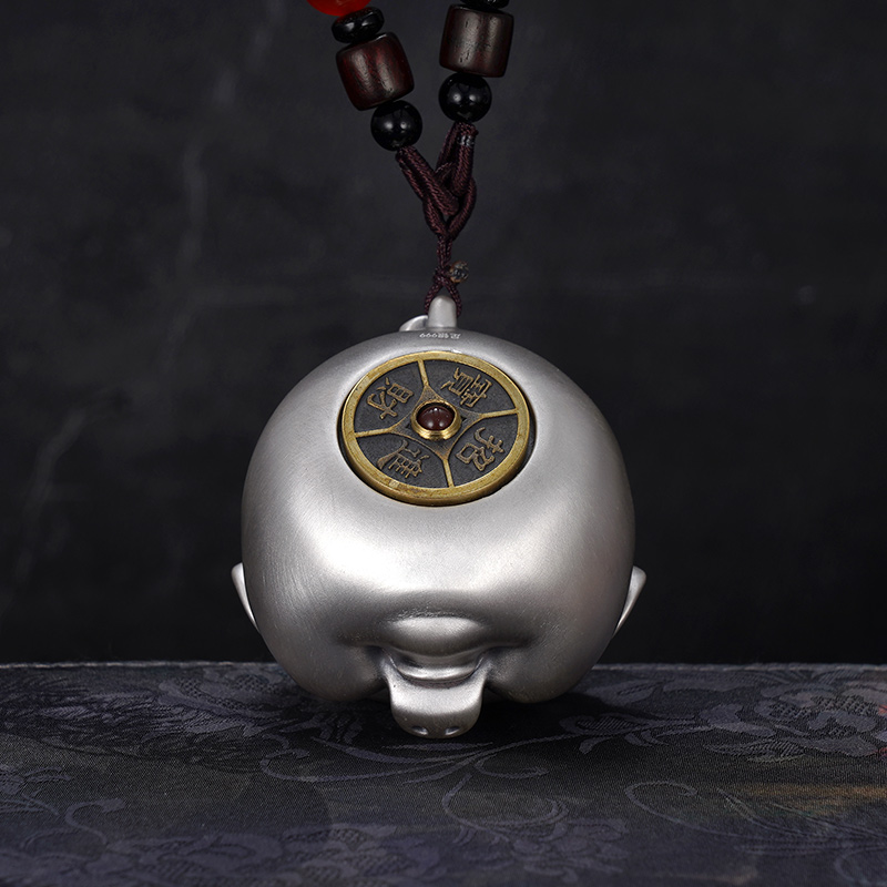 【规格】:吊坠约4.8*4.3cm,绳长约16cm,重约73g,底部招财进宝可转动