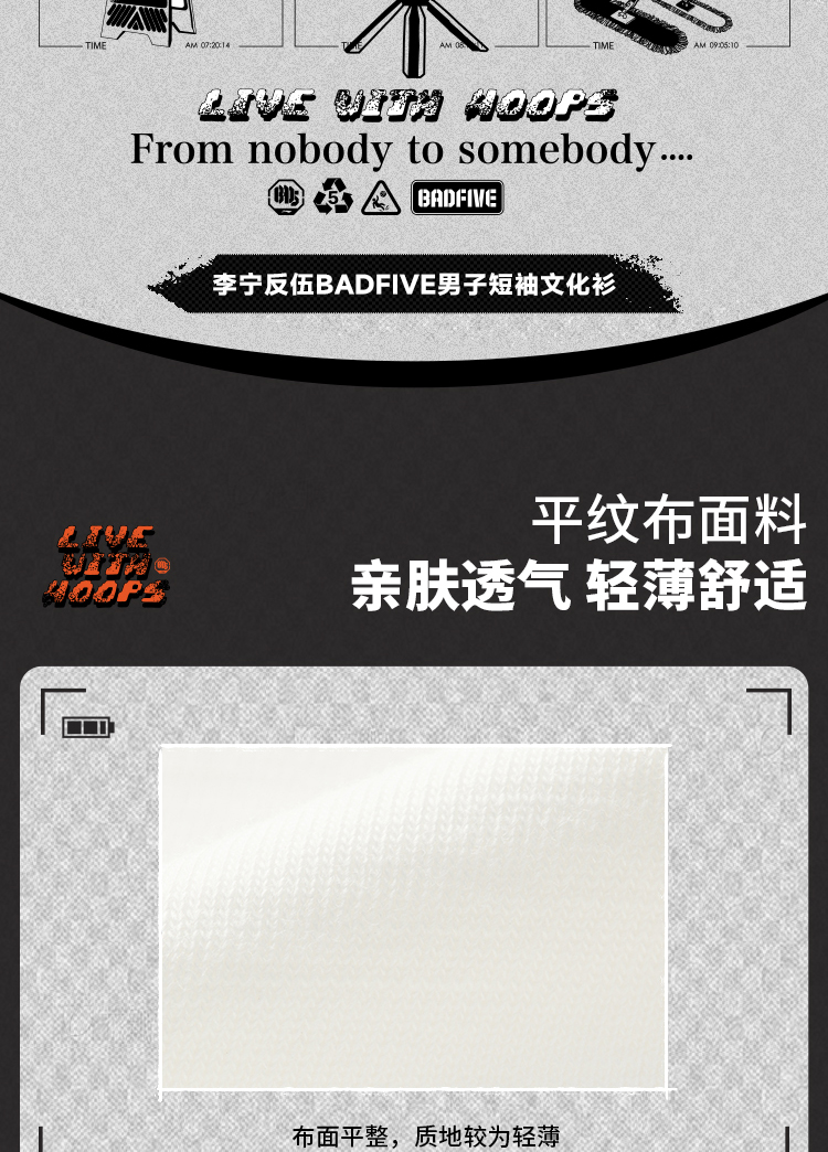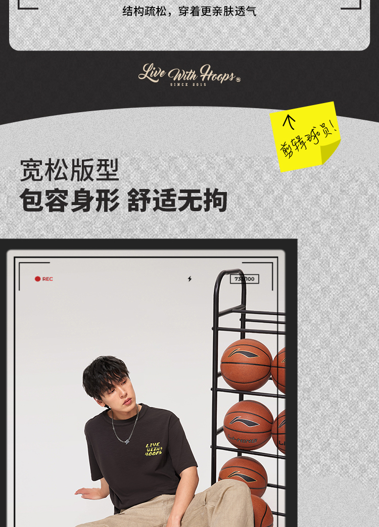 李宁反伍BADFIVE短袖T恤男士宽松舒适针织运动服AHSV023