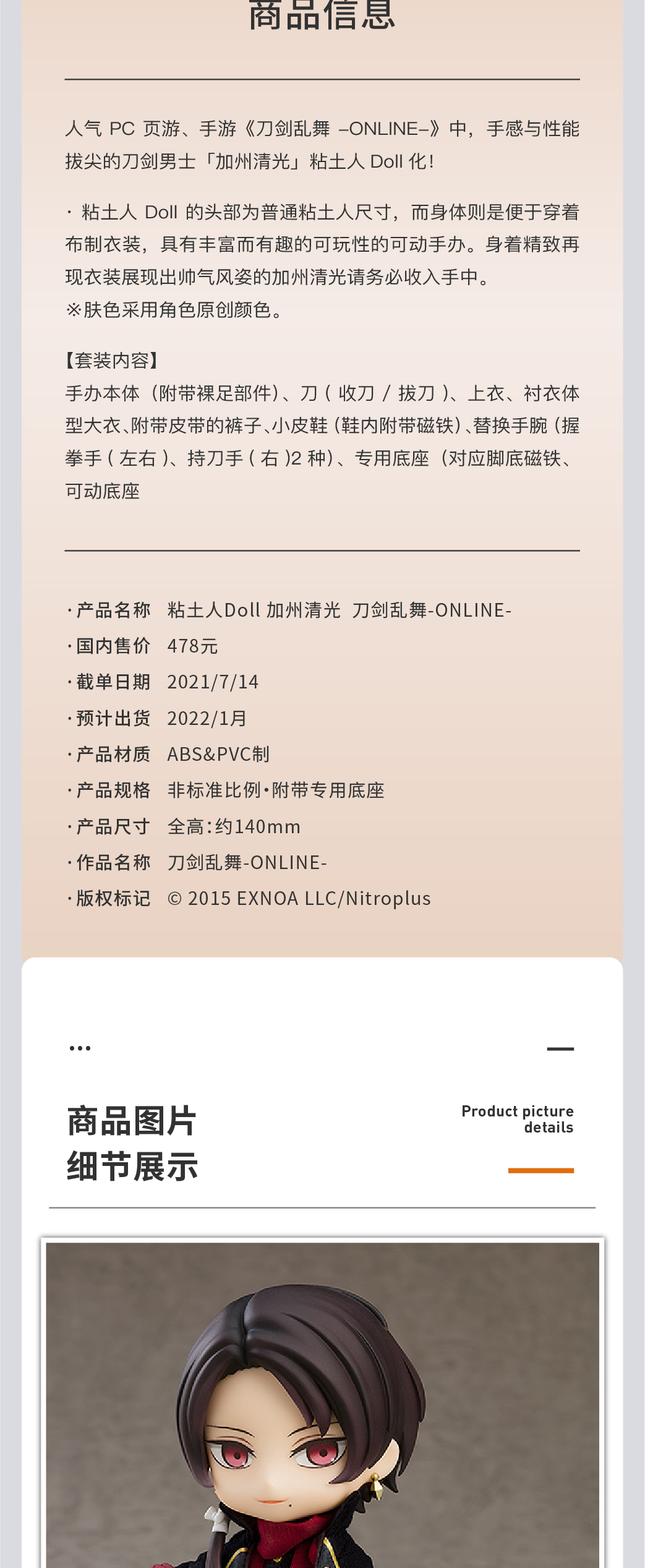 【GSC现货】粘土人Doll 加州清光 刀剑乱舞-ONLINE-