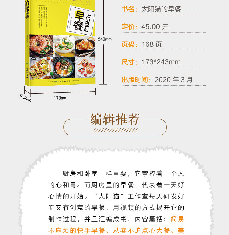 2020新书 太阳猫的早餐 健康营养早饭懒人快手速成教程 包子燕麦豆腐脑方便套餐简易制作菜食谱大全 家庭轻食简餐早午餐烹饪技巧