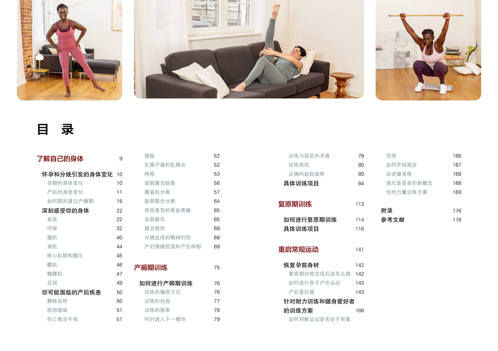 本书的训练内容分10大模块,严格按照产后女性的身体康复规律进行编排。通过训练,你的身体将得到系统重建,你会建立正确的肌肉“功能记忆”,收获强健的身体核心、挺拔的体态、紧致的腰腹以及柔韧而有力的身体。