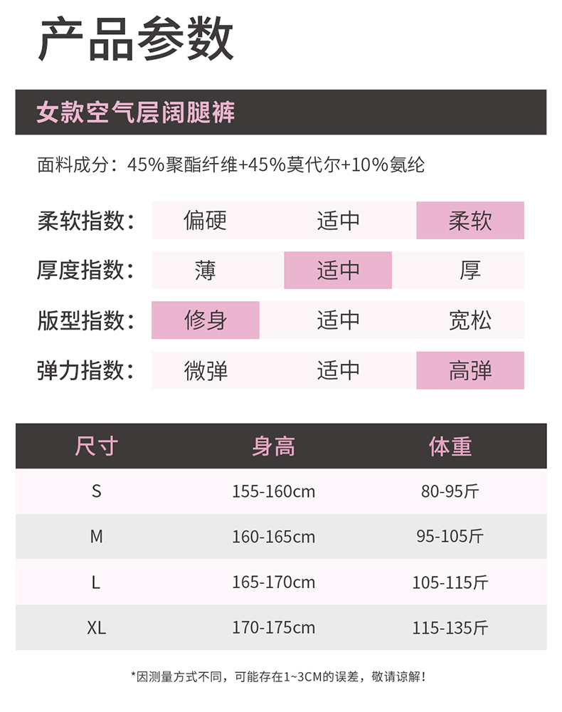 I'd爱帝超柔云朵空气层阔腿裤女士高弹运动户外休闲裤