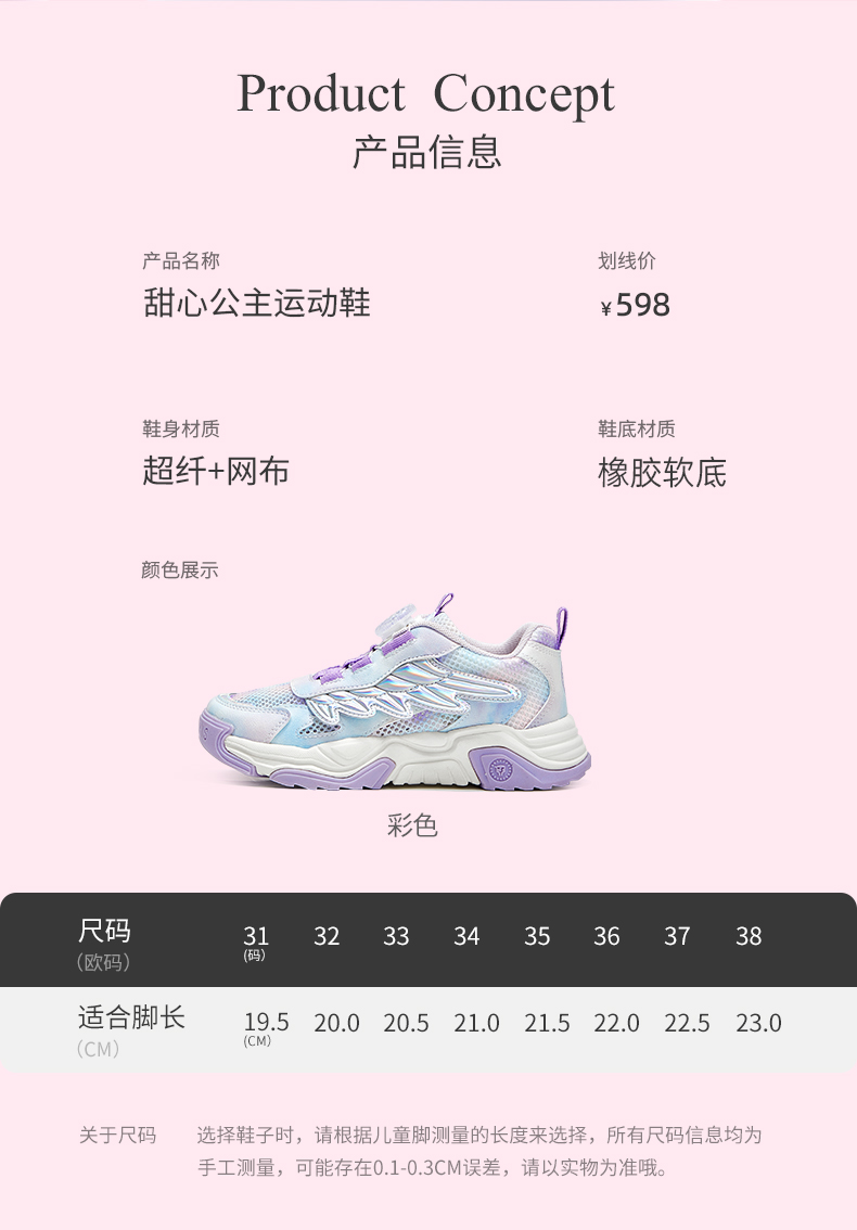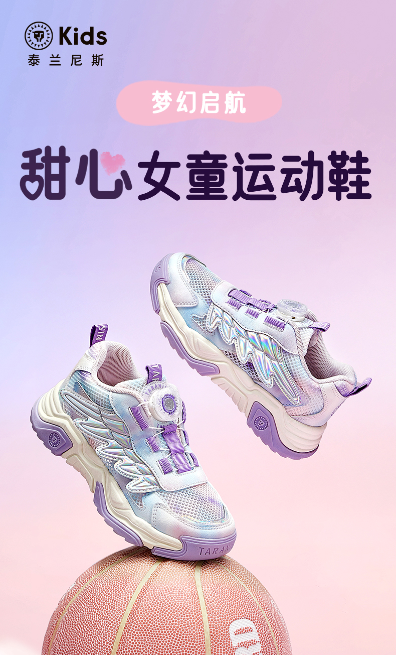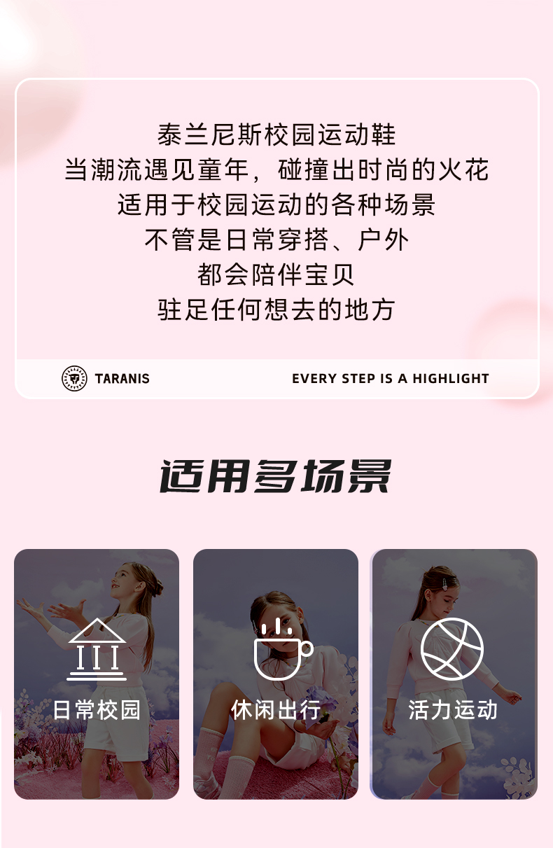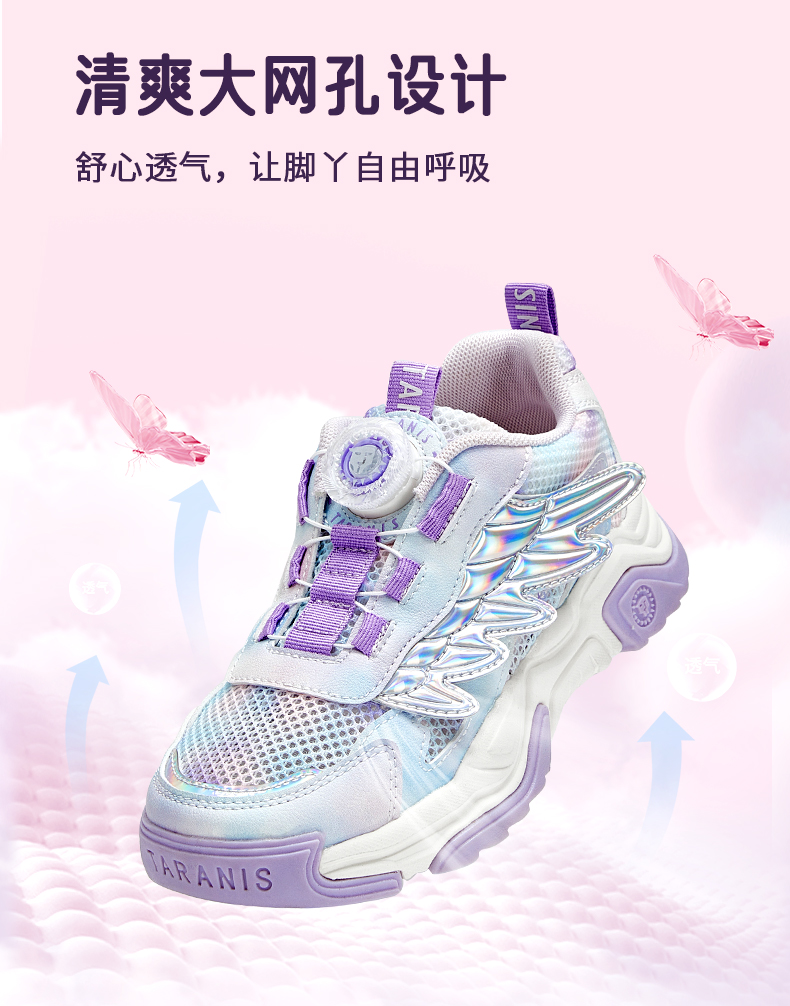 泰兰尼斯kids春夏新款透气网面运动鞋舒适轻弹女童舒适校园跑步鞋 T01D5A6947