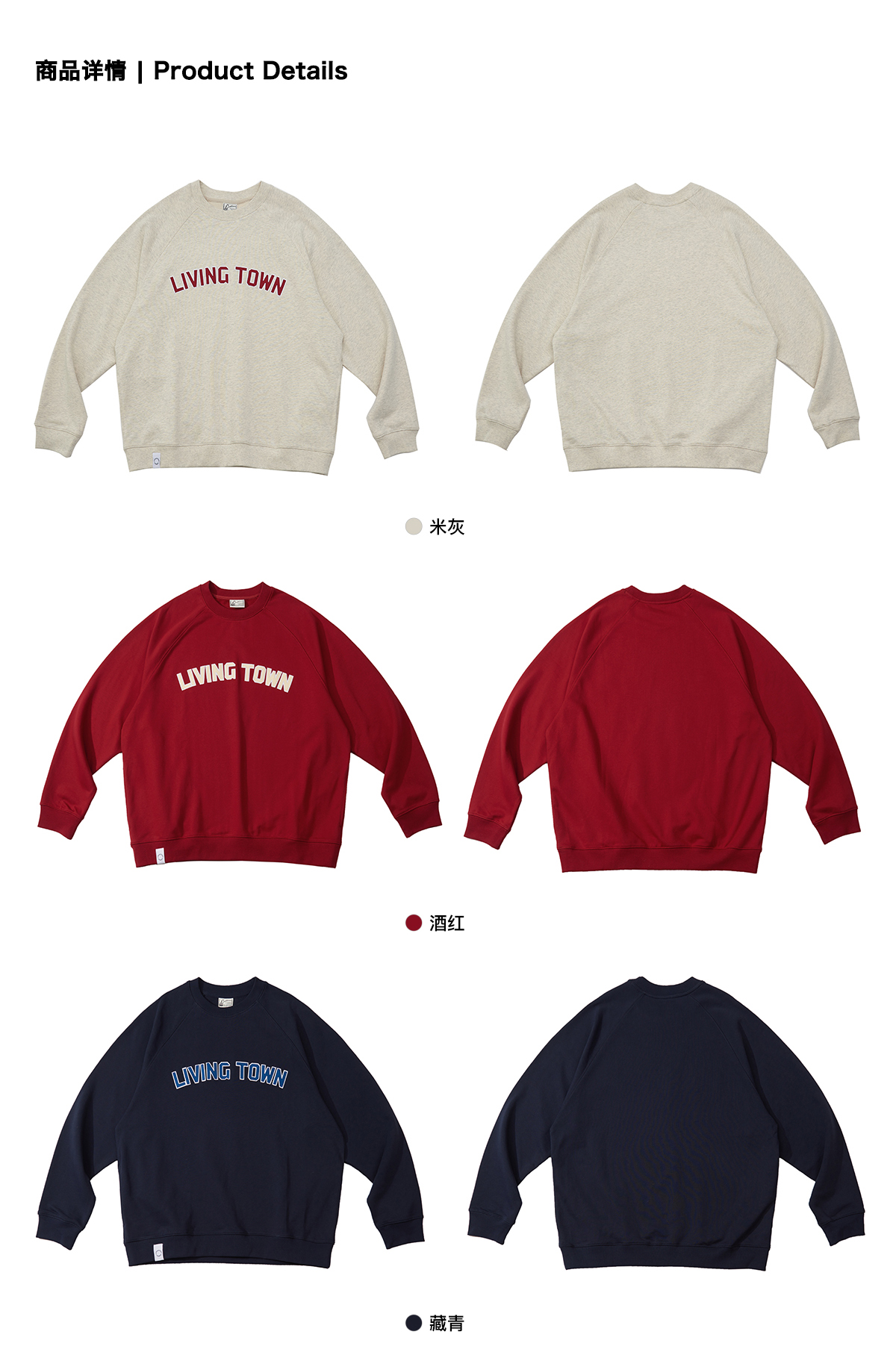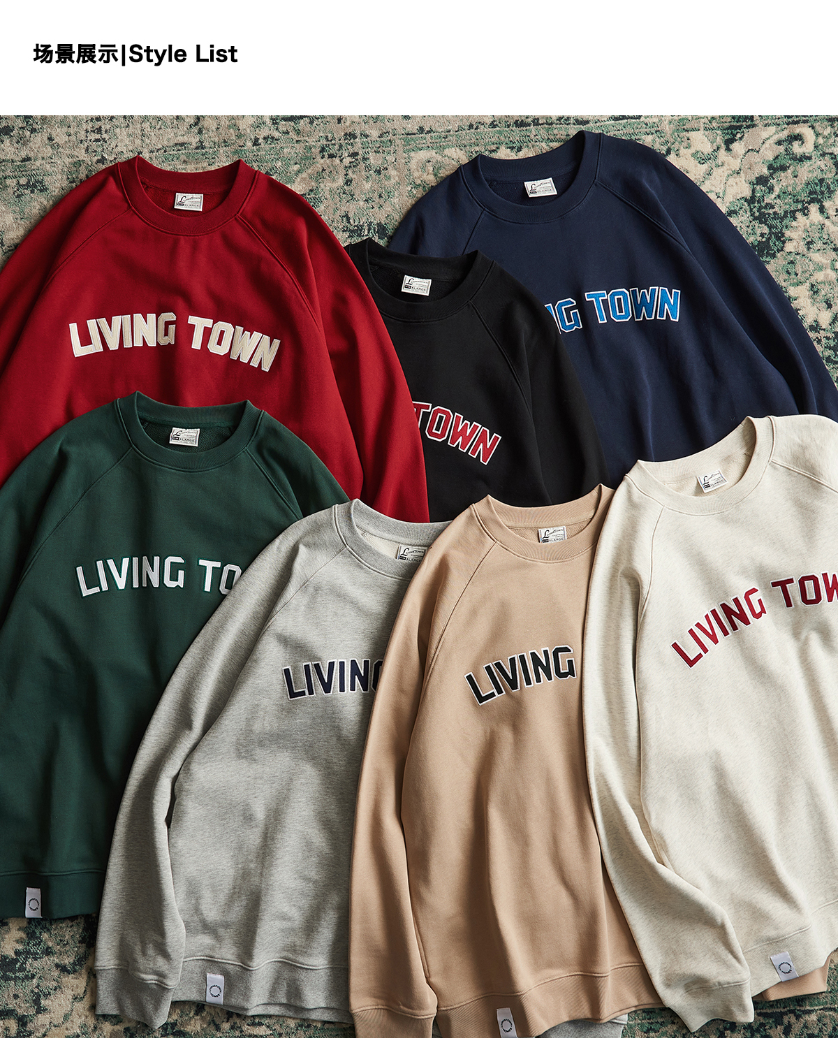 LIVINGTOWN/LT重磅460G贴布绣圆领卫衣 不加绒