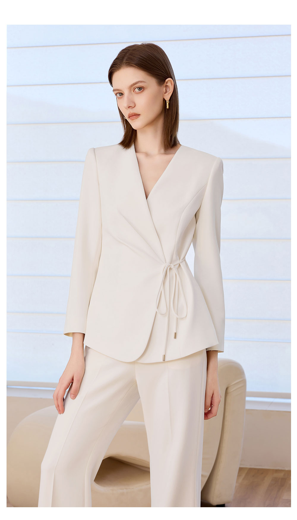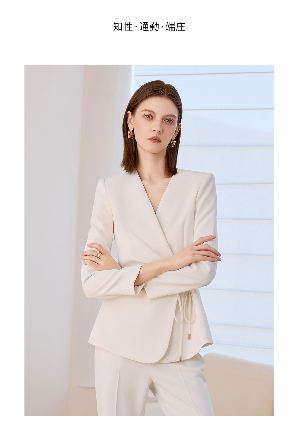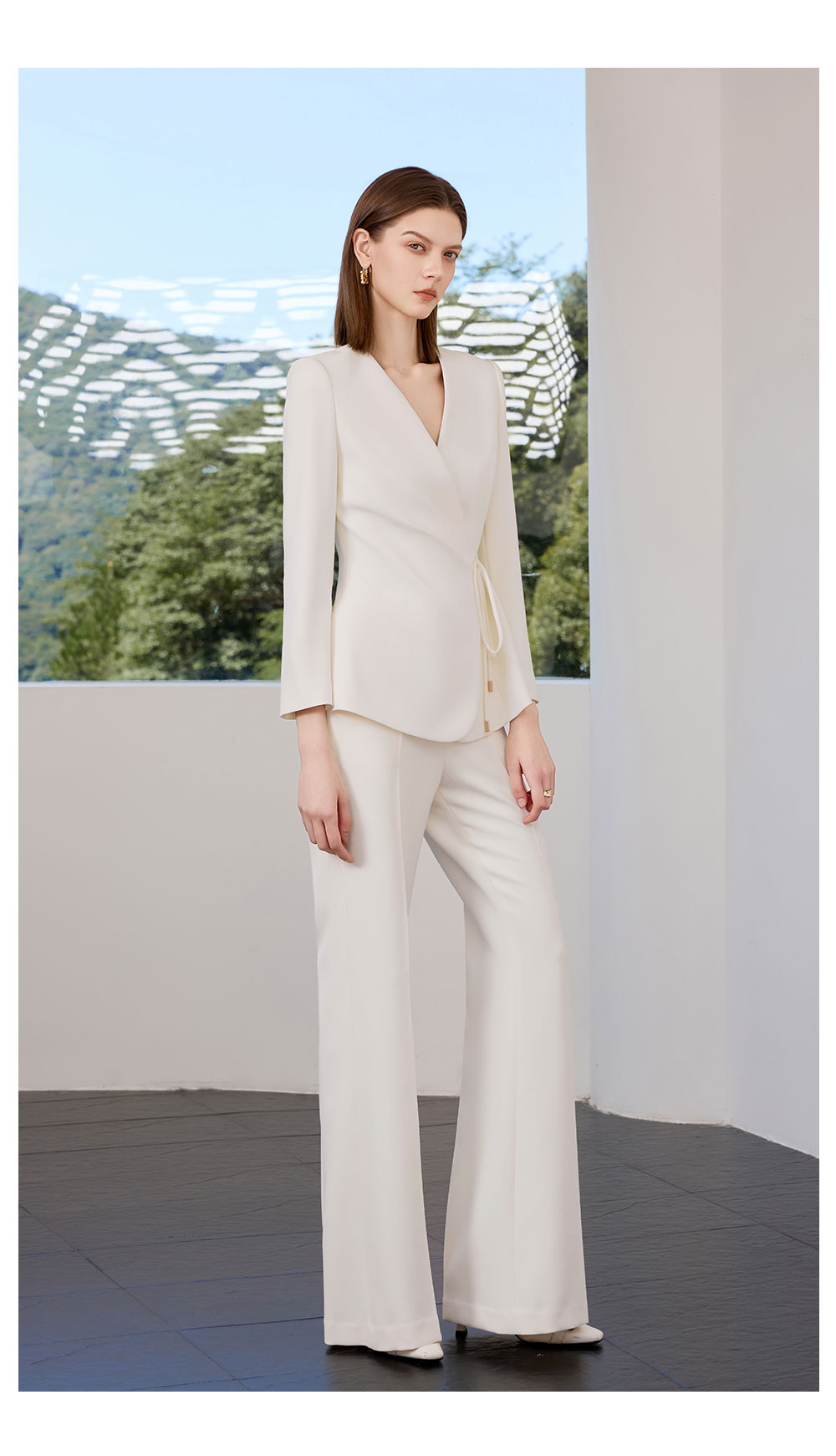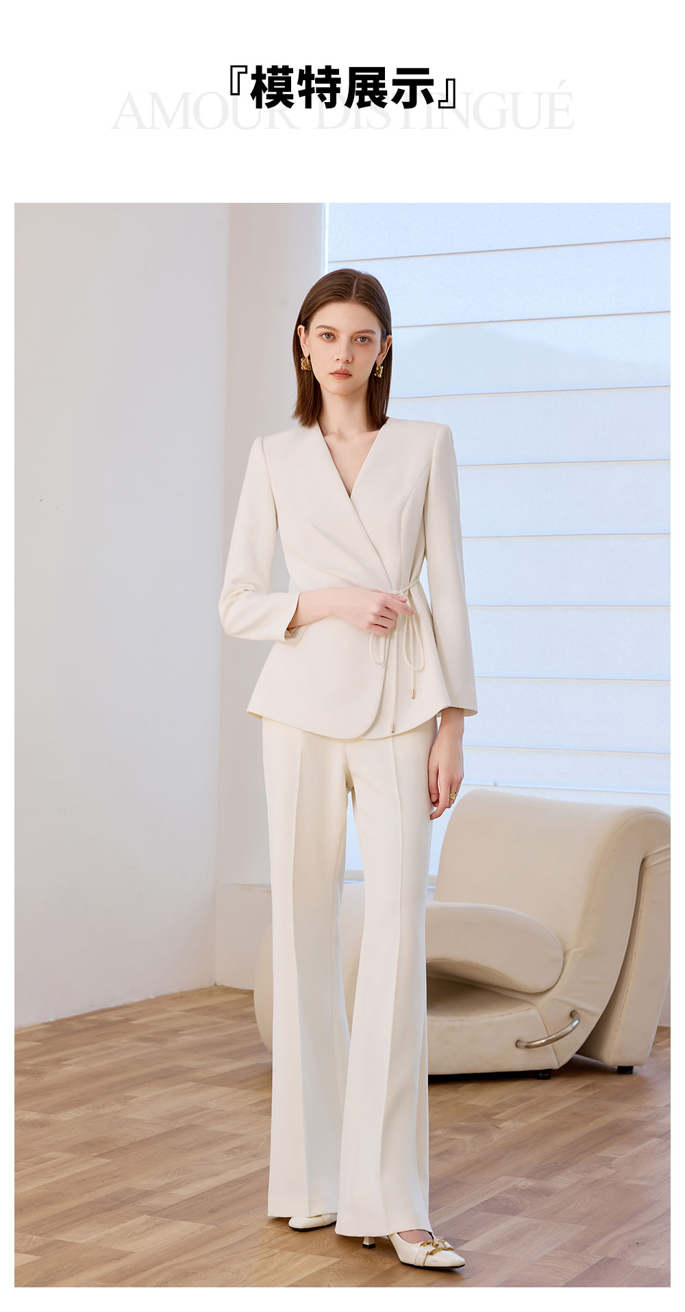 IWY/气质米白色新中式西装套装女春秋高级感微喇裤职业正装CP2478