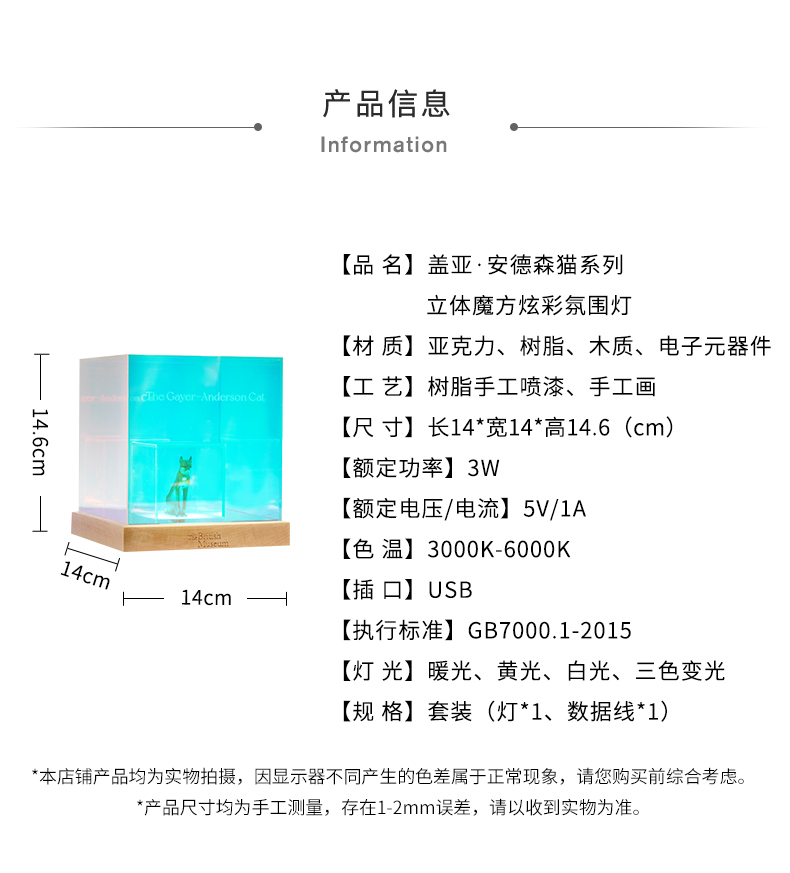大英博物馆盖亚安德森猫系列立体魔方炫彩氛围灯