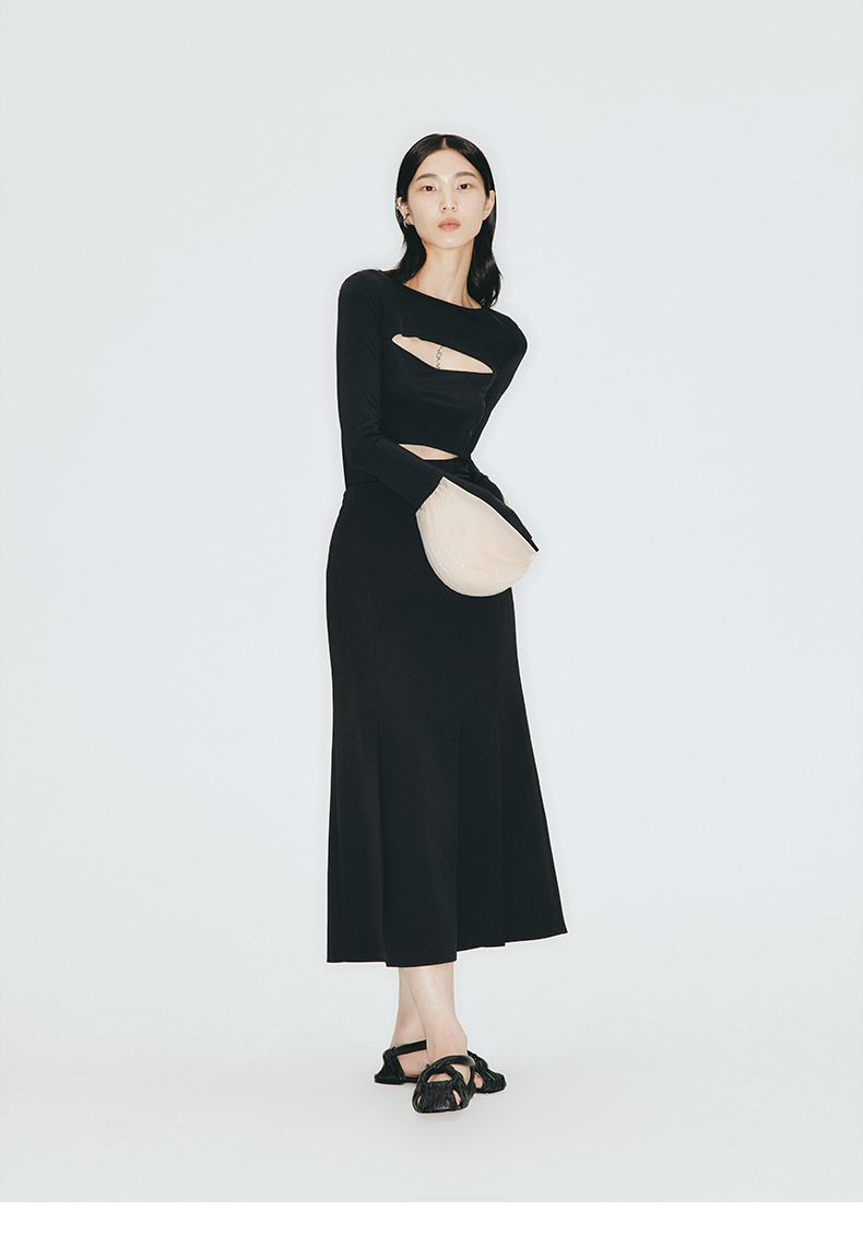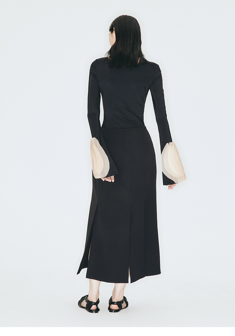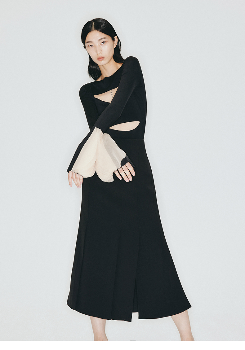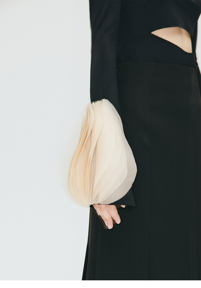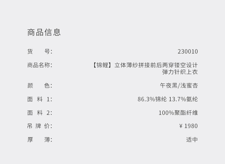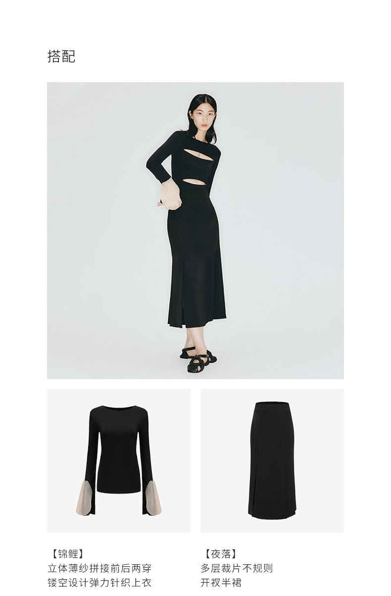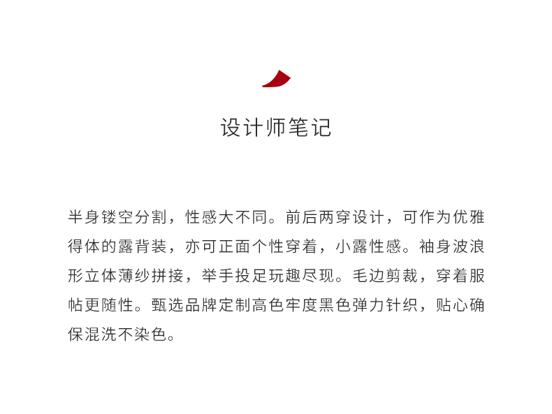 【锦鲤】立体薄纱拼接前后两穿镂空设计弹力针织上衣/230010