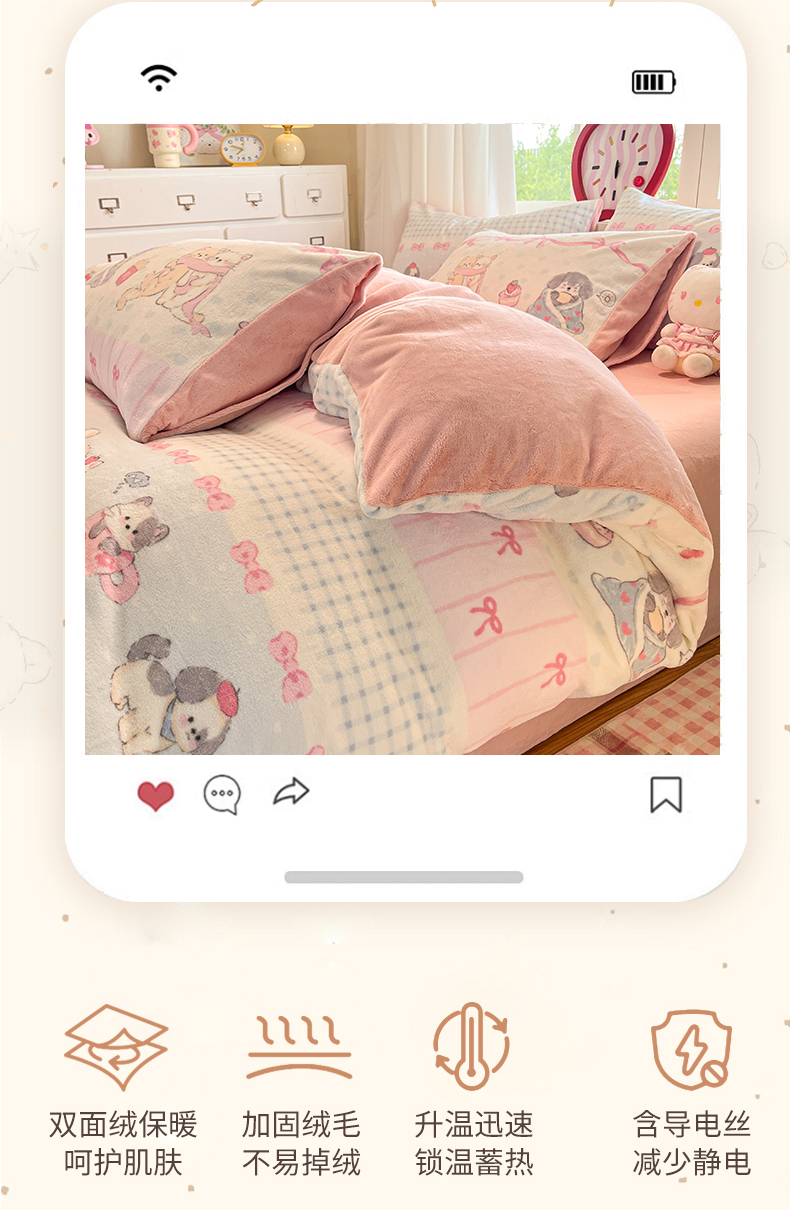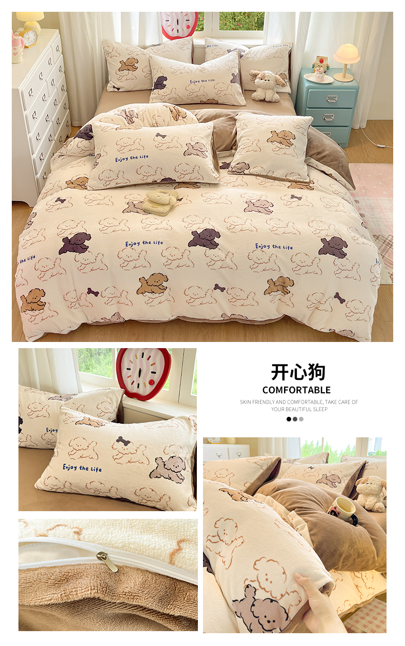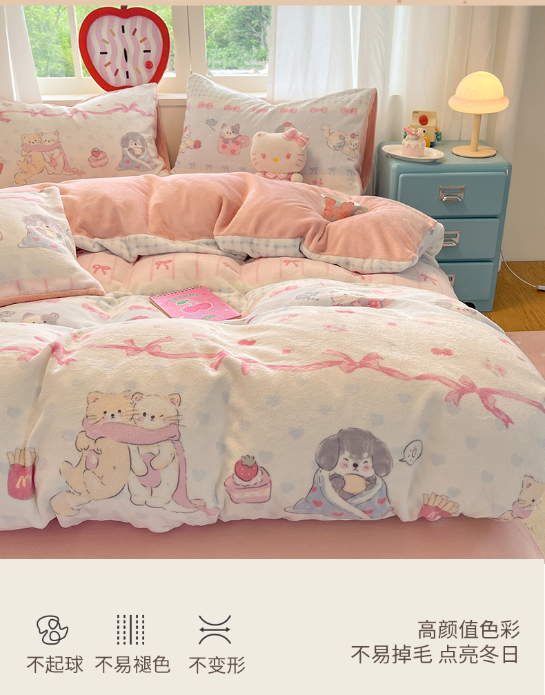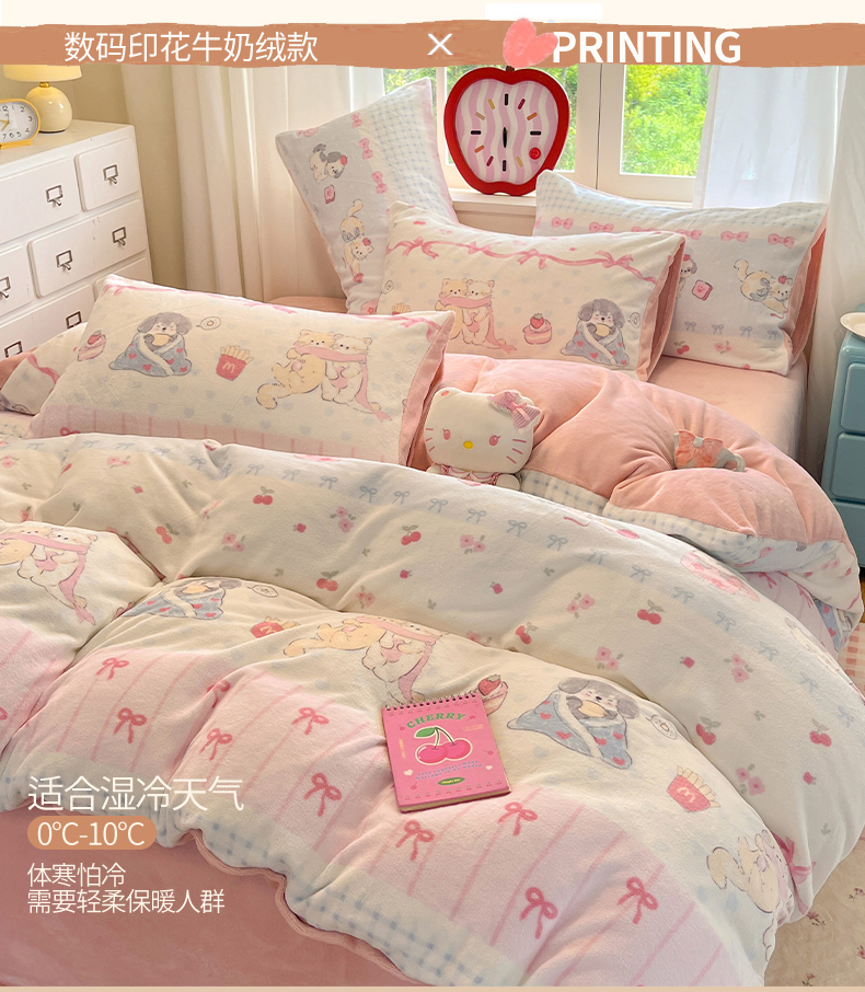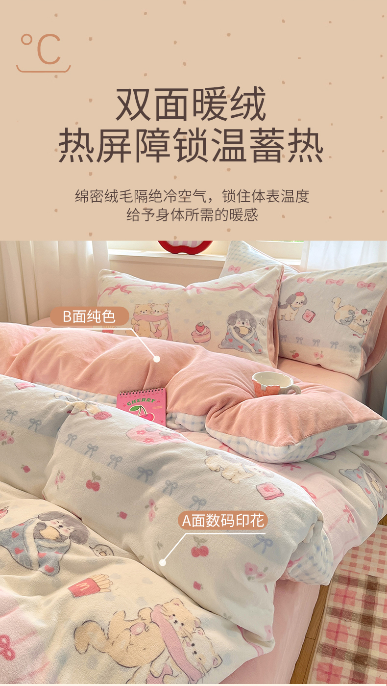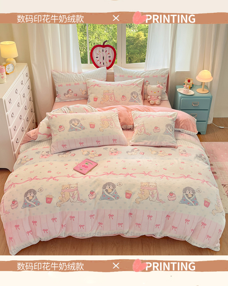 【品牌直发】加倍生活 高克重卡通牛奶绒四件套-印花系列 双面暖绒密绒毛数码印花被套
