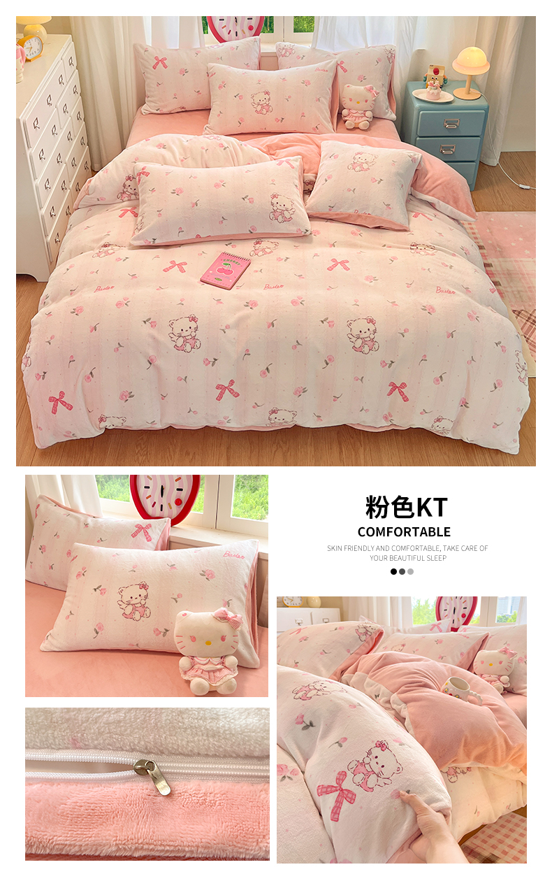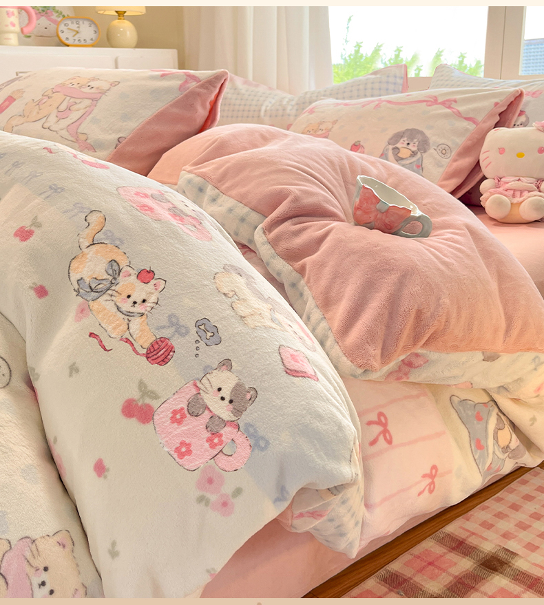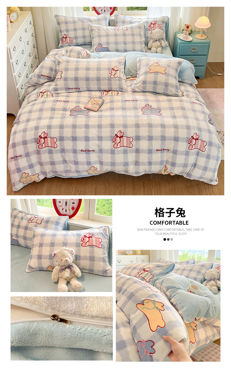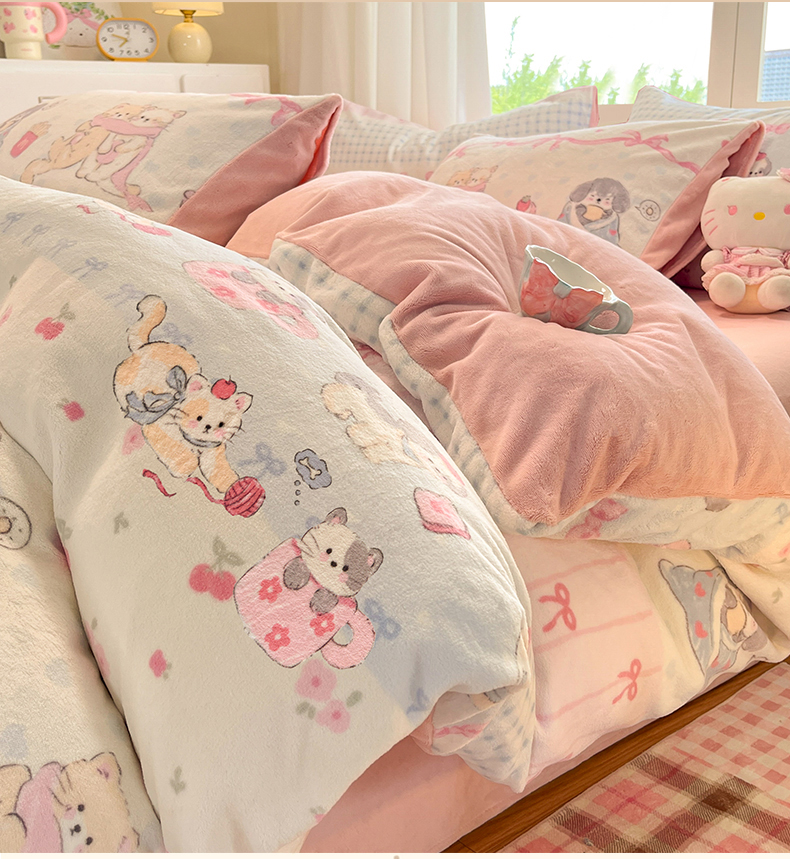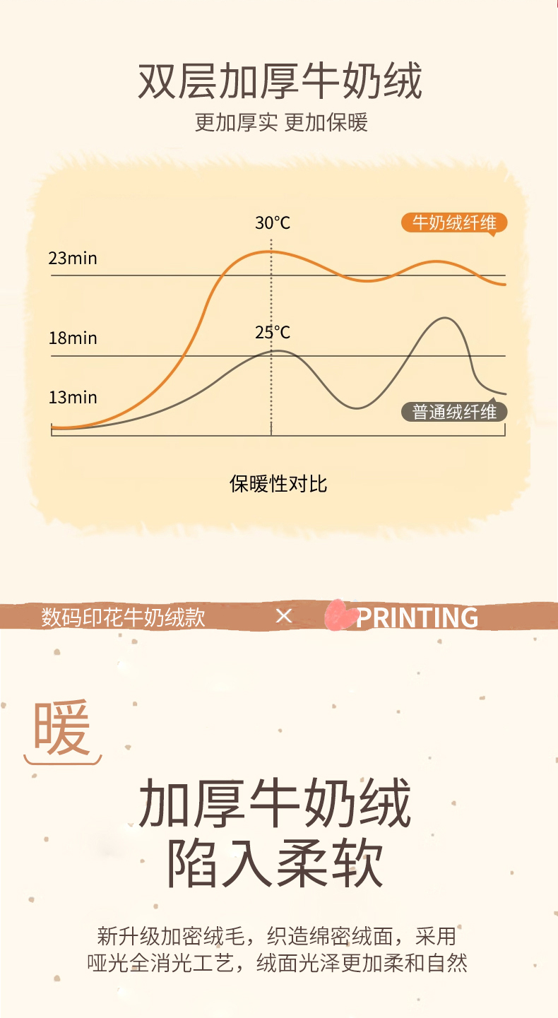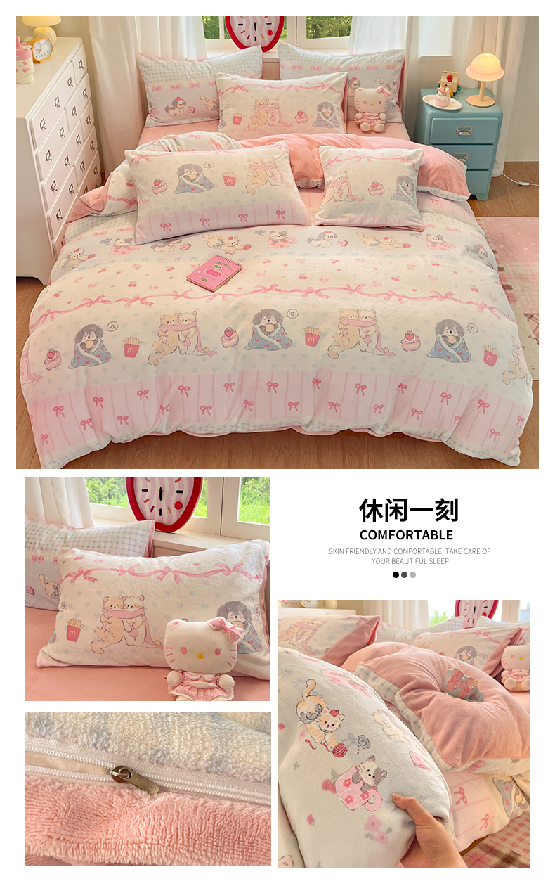 【品牌直发】加倍生活 高克重卡通牛奶绒四件套-印花系列 双面暖绒密绒毛数码印花被套