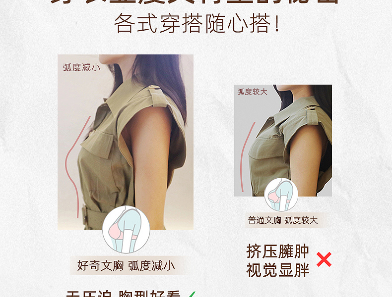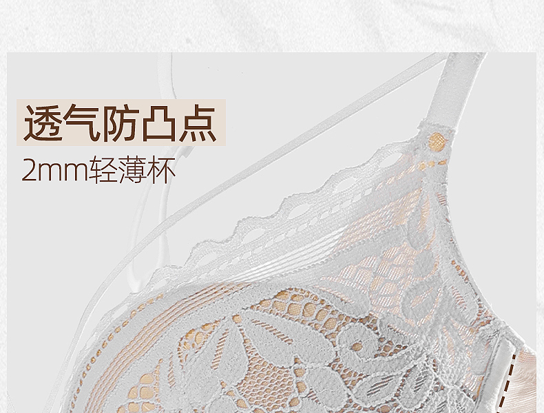 好奇蜜斯美背内衣女夏季薄款大胸显小无钢圈文胸套装蕾丝性感胸罩优拉