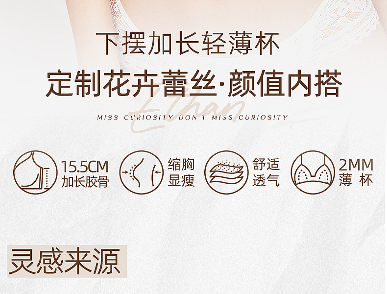 好奇蜜斯内衣女小胸聚拢显大无钢圈纯欲防下垂性感文胸罩套装薄款 伊琳娜