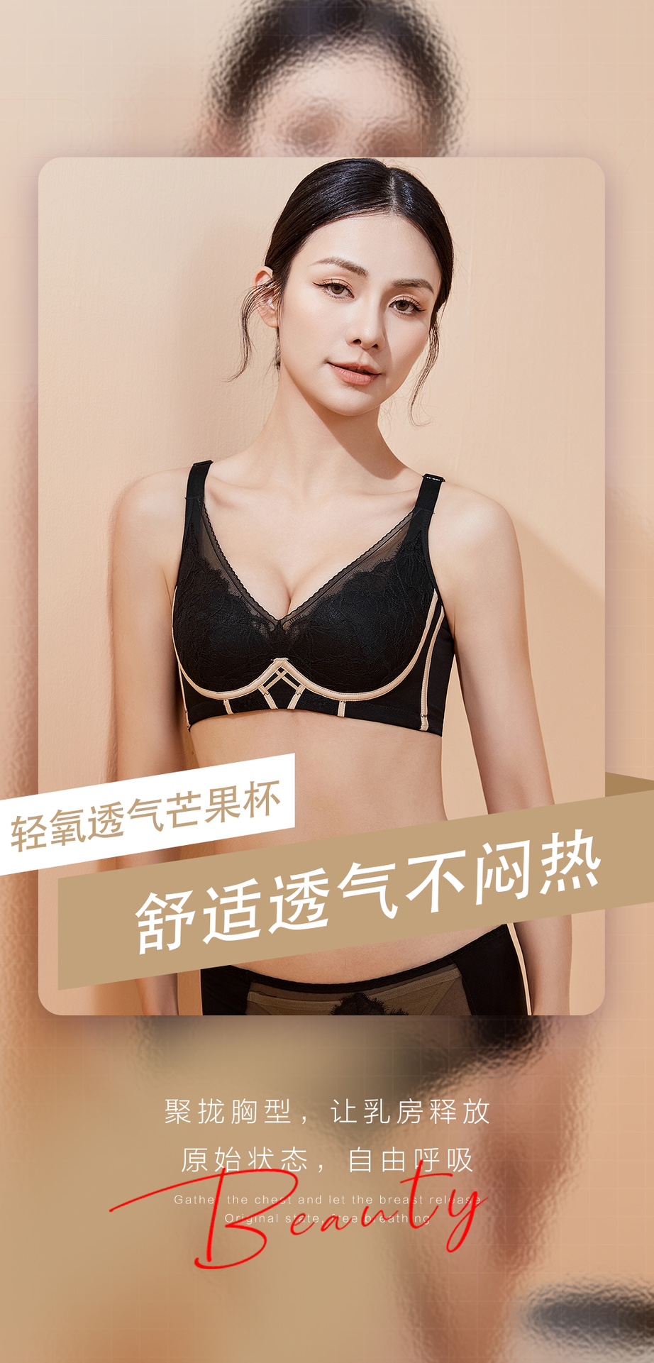 鸣瑶琴瑟 文胸 红酒杯软钢圈内衣聚拢上托不空杯大胸显小薄而不漏透气文胸