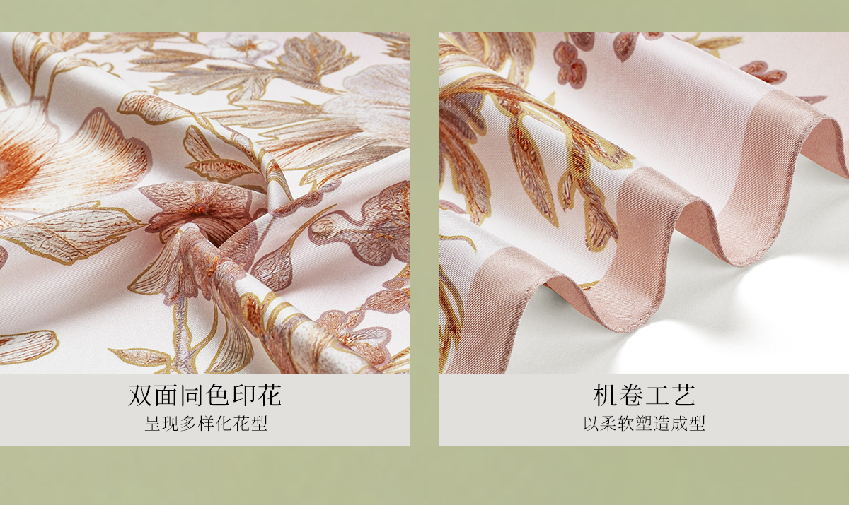 万事利“欢乐颂”51厘米双面印花真丝小方巾