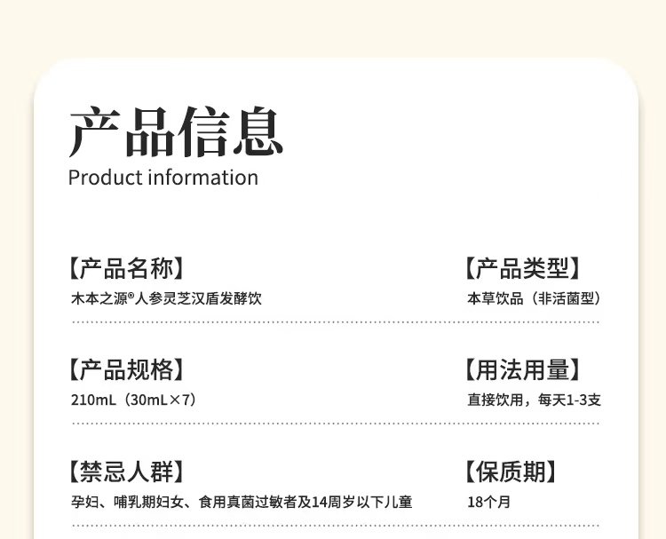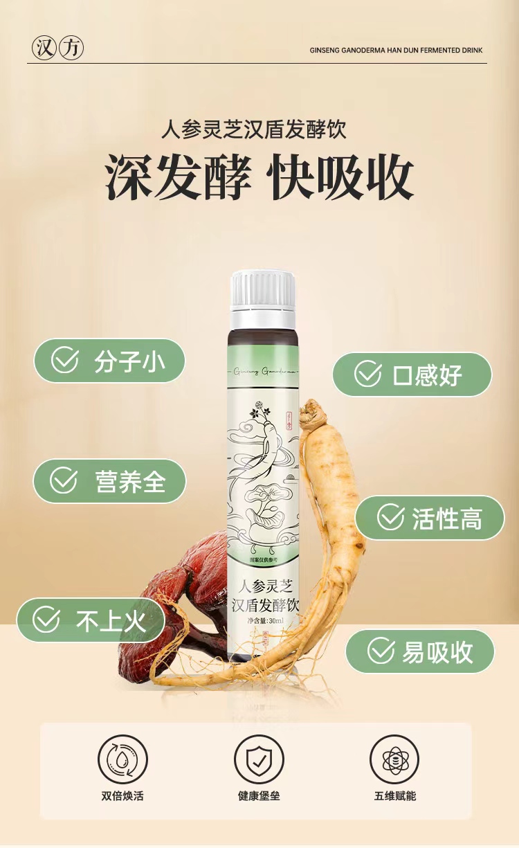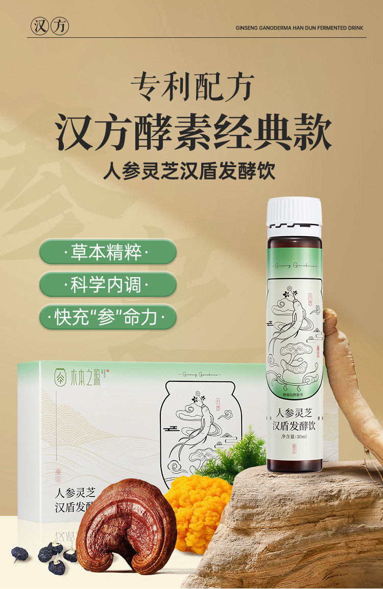 人参灵芝汉盾发酵饮 汉方酵素经典款 专利配方 //木本