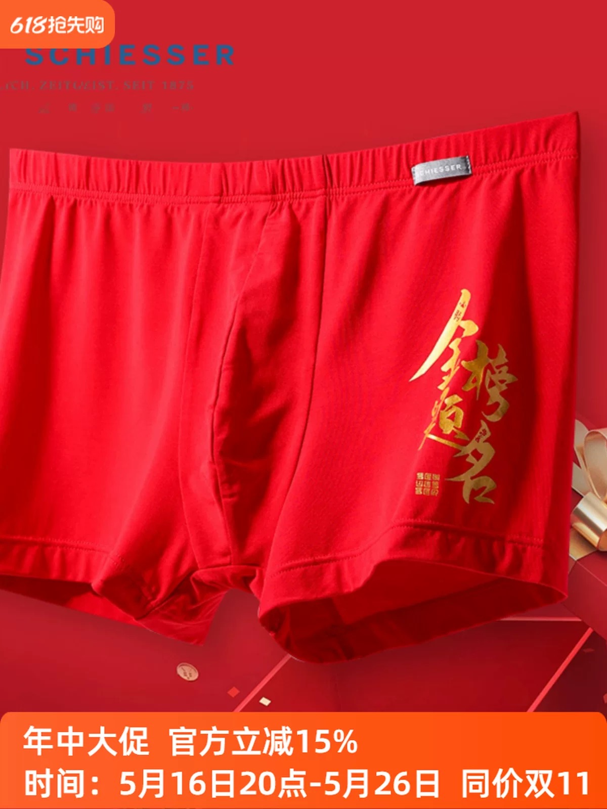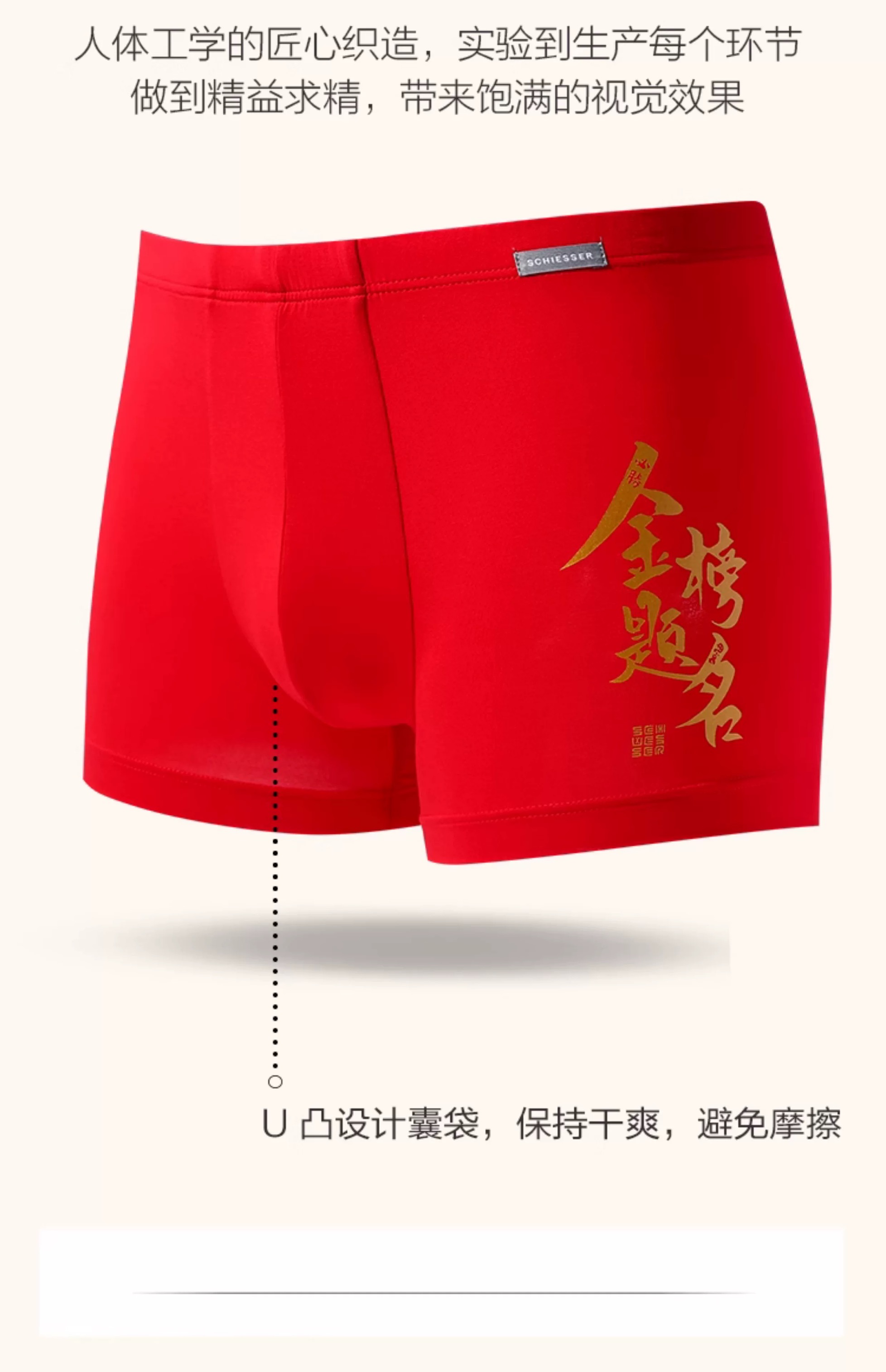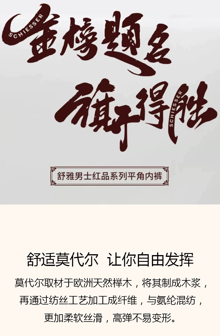 (男状元零碳莫代尔)SCHIESSER德国舒雅男生金榜题名旗开得胜零碳莫代尔平角小裤35/21905T
