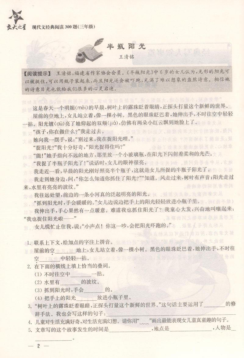 交大之星 现代文经典阅读300题 3年级/三年级 新课标教辅课外复习资料