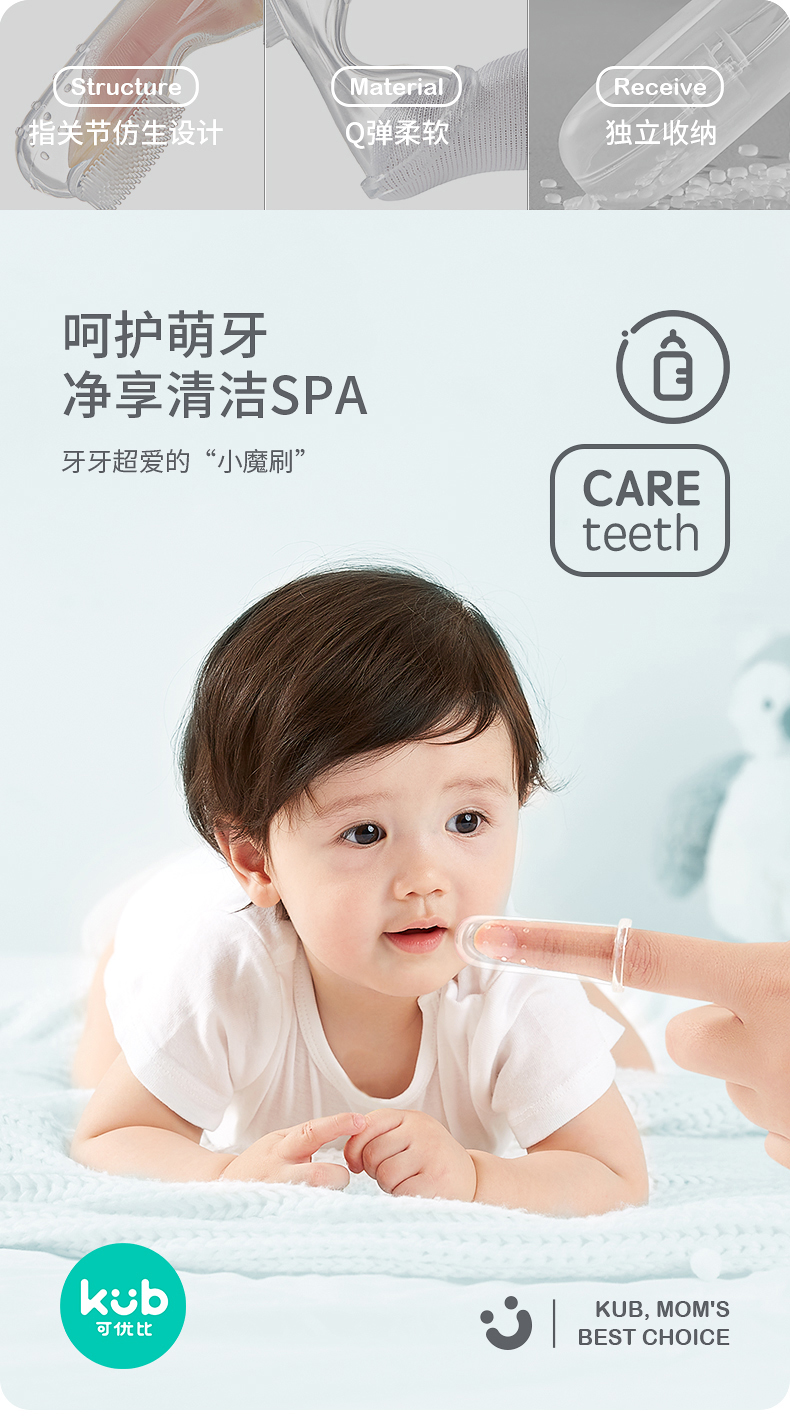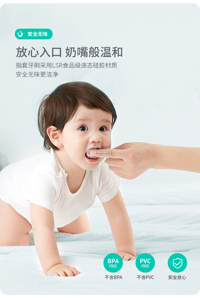 可优比婴儿牙刷硅胶手指指套0一1岁宝宝婴幼儿乳牙口腔清洁手指套