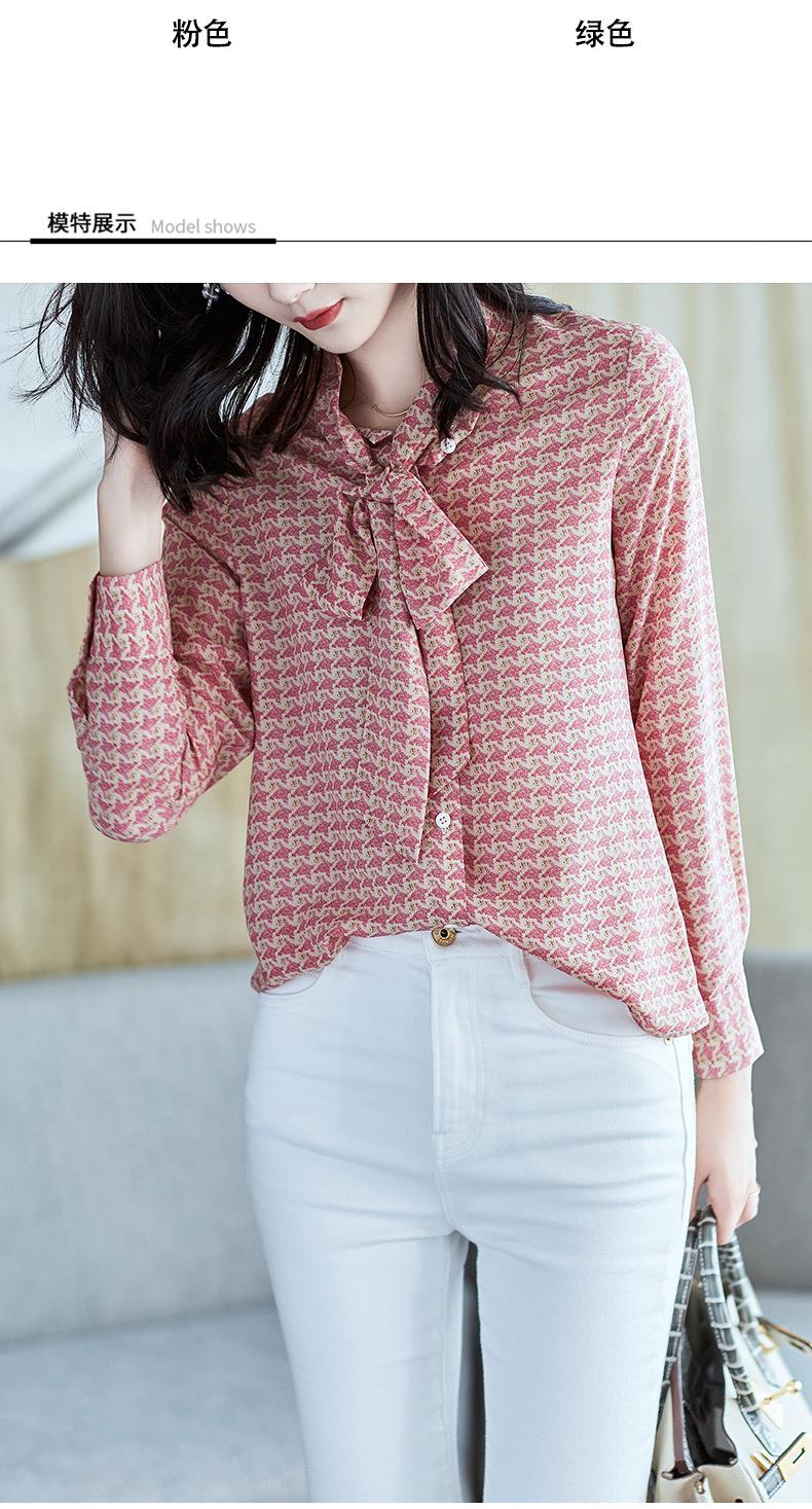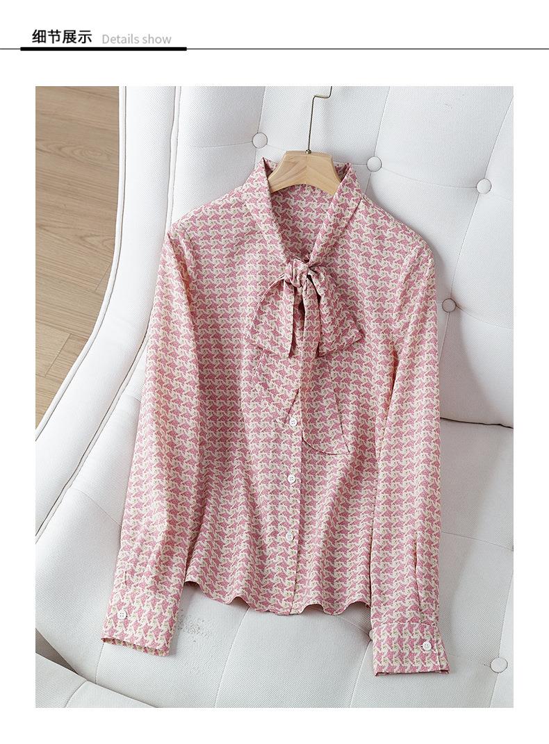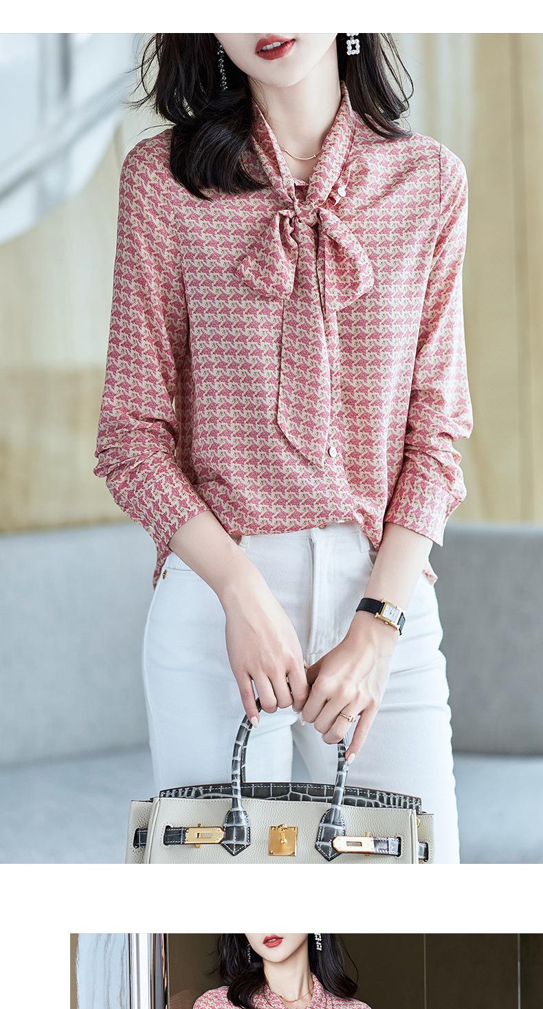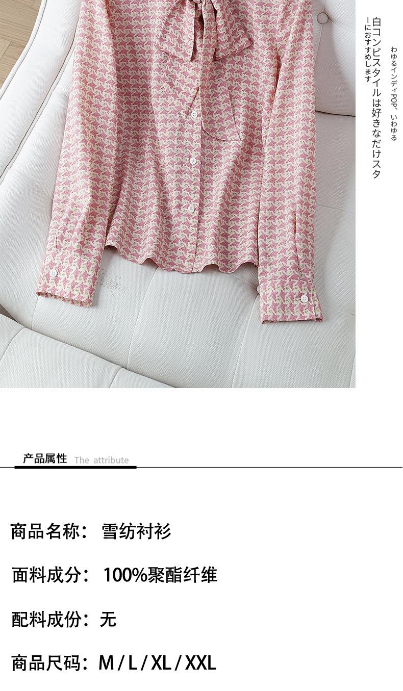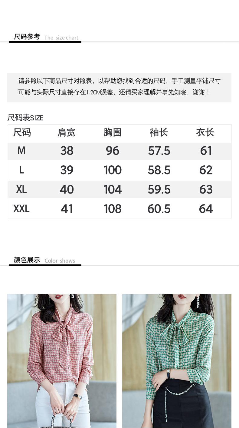 2023秋装新款衬衫女长袖宽松雪纺衫千鸟格女士衬衣A2718