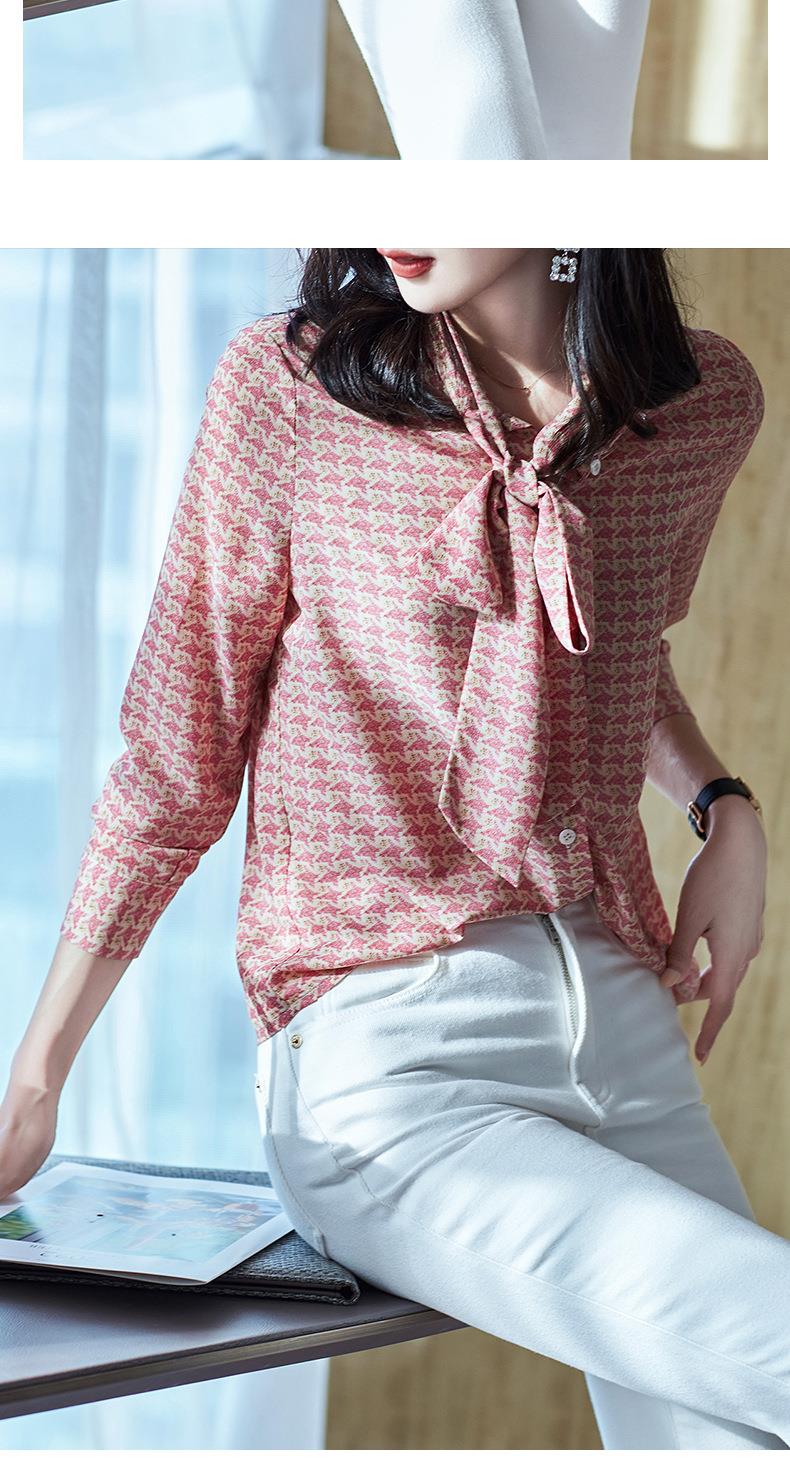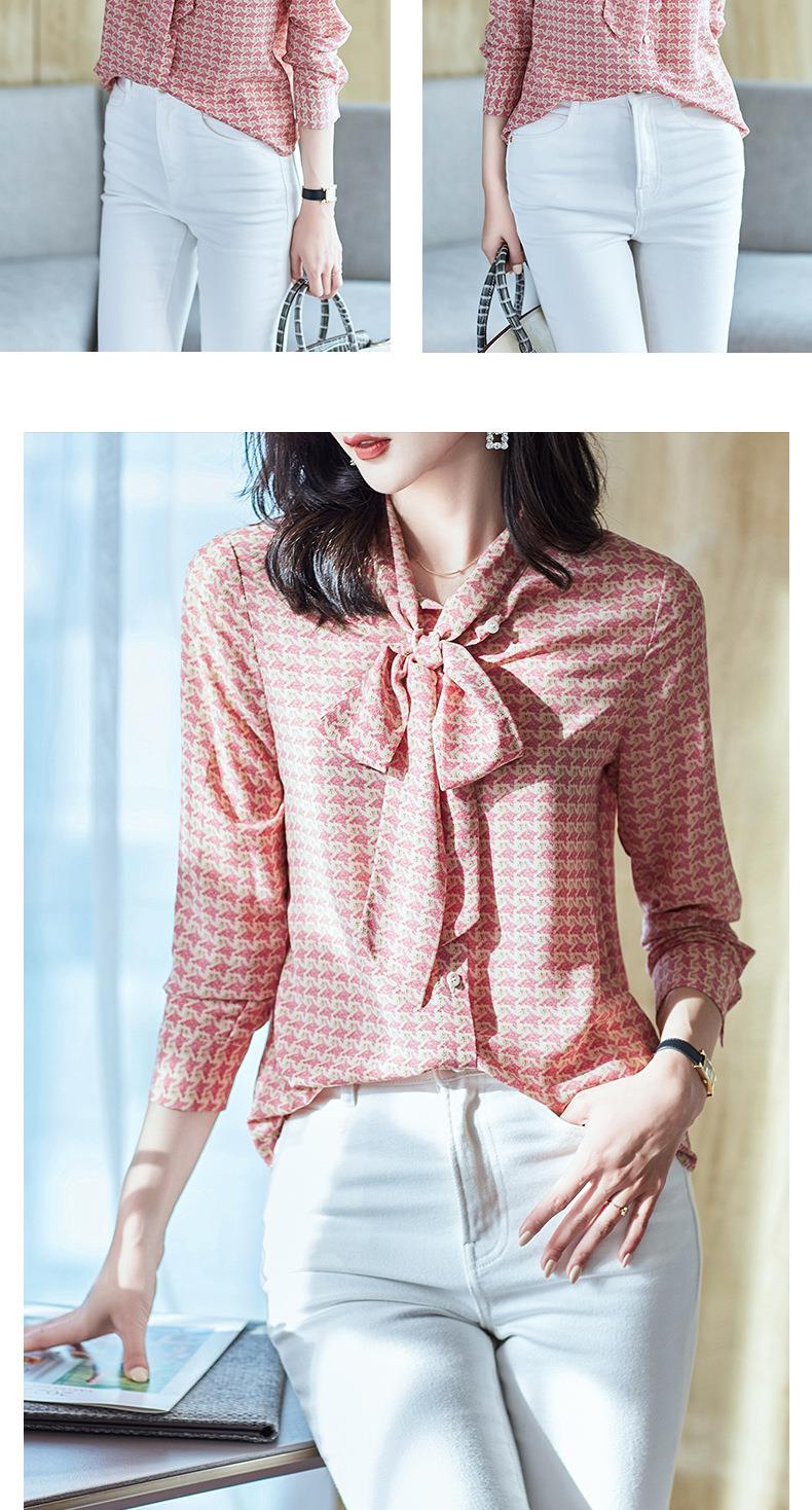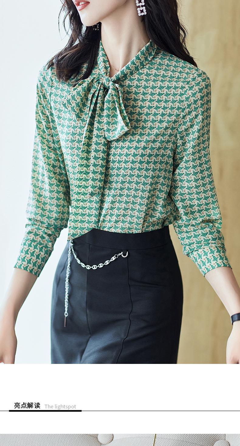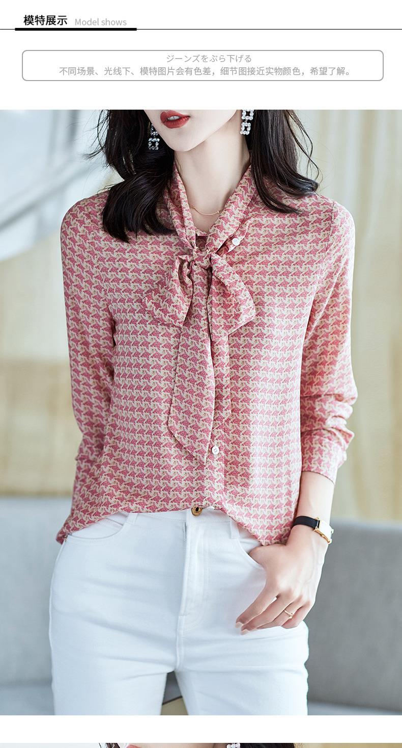 2023秋装新款衬衫女长袖宽松雪纺衫千鸟格女士衬衣A2718