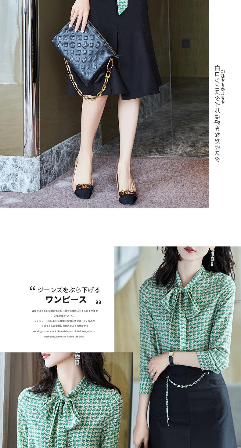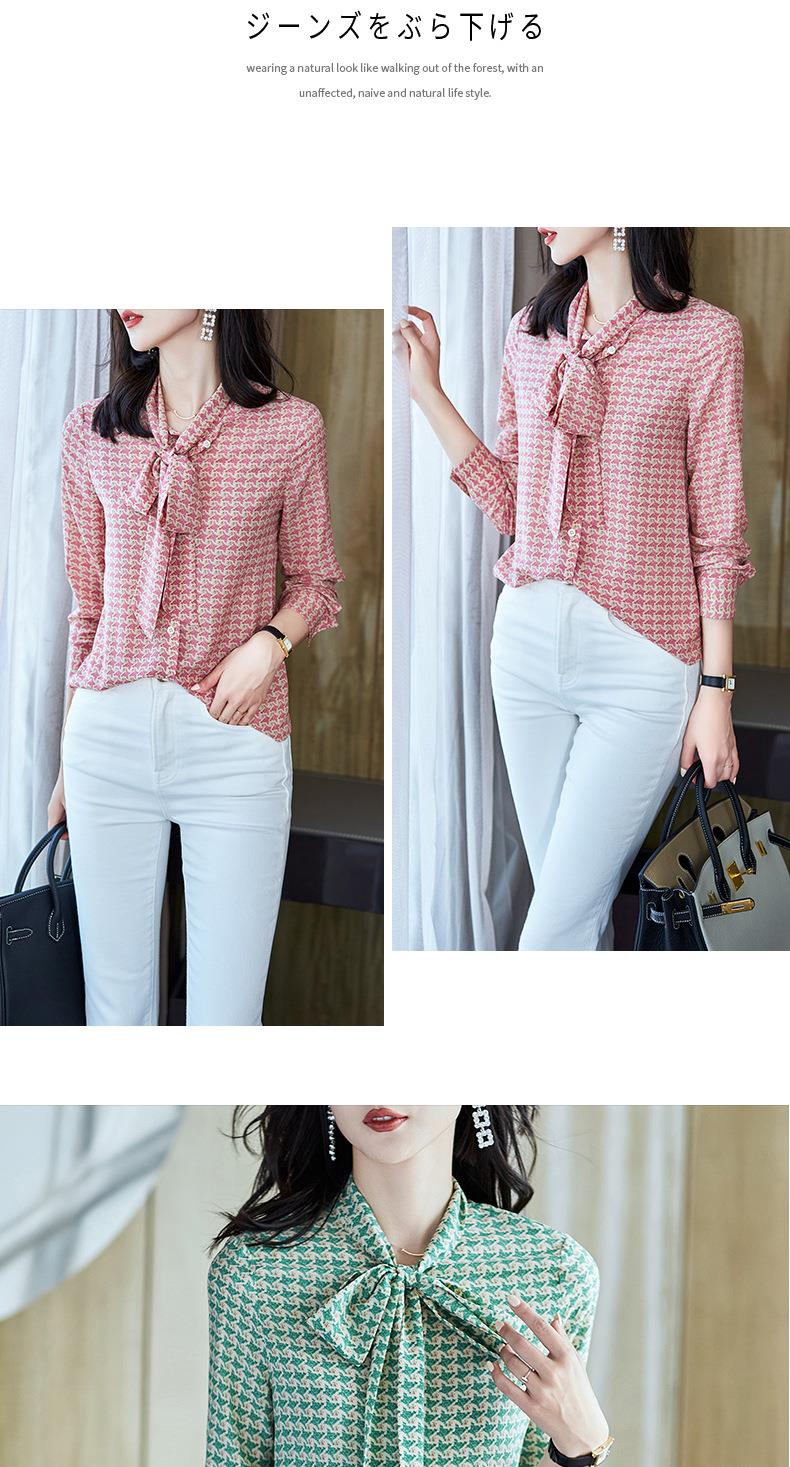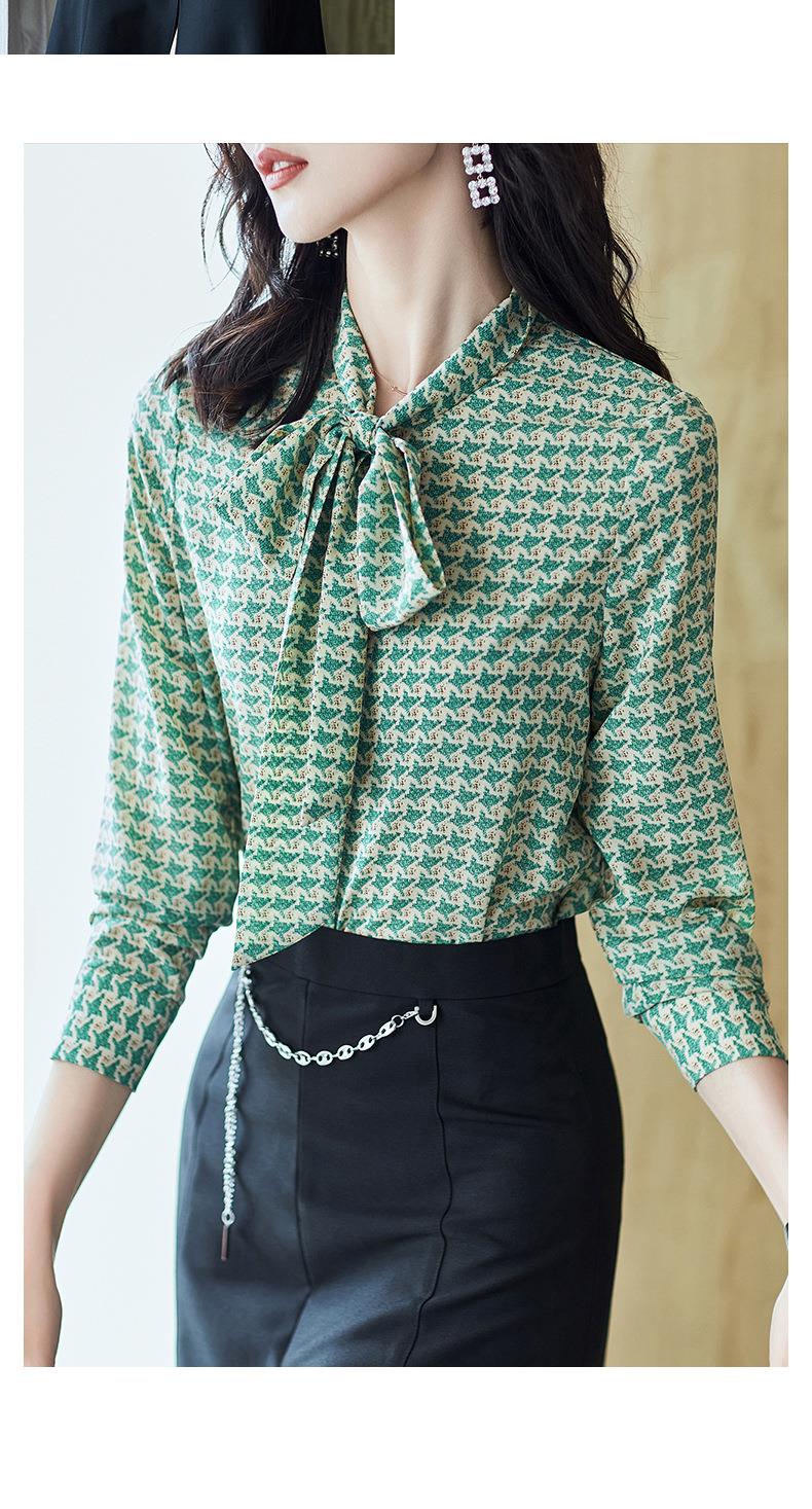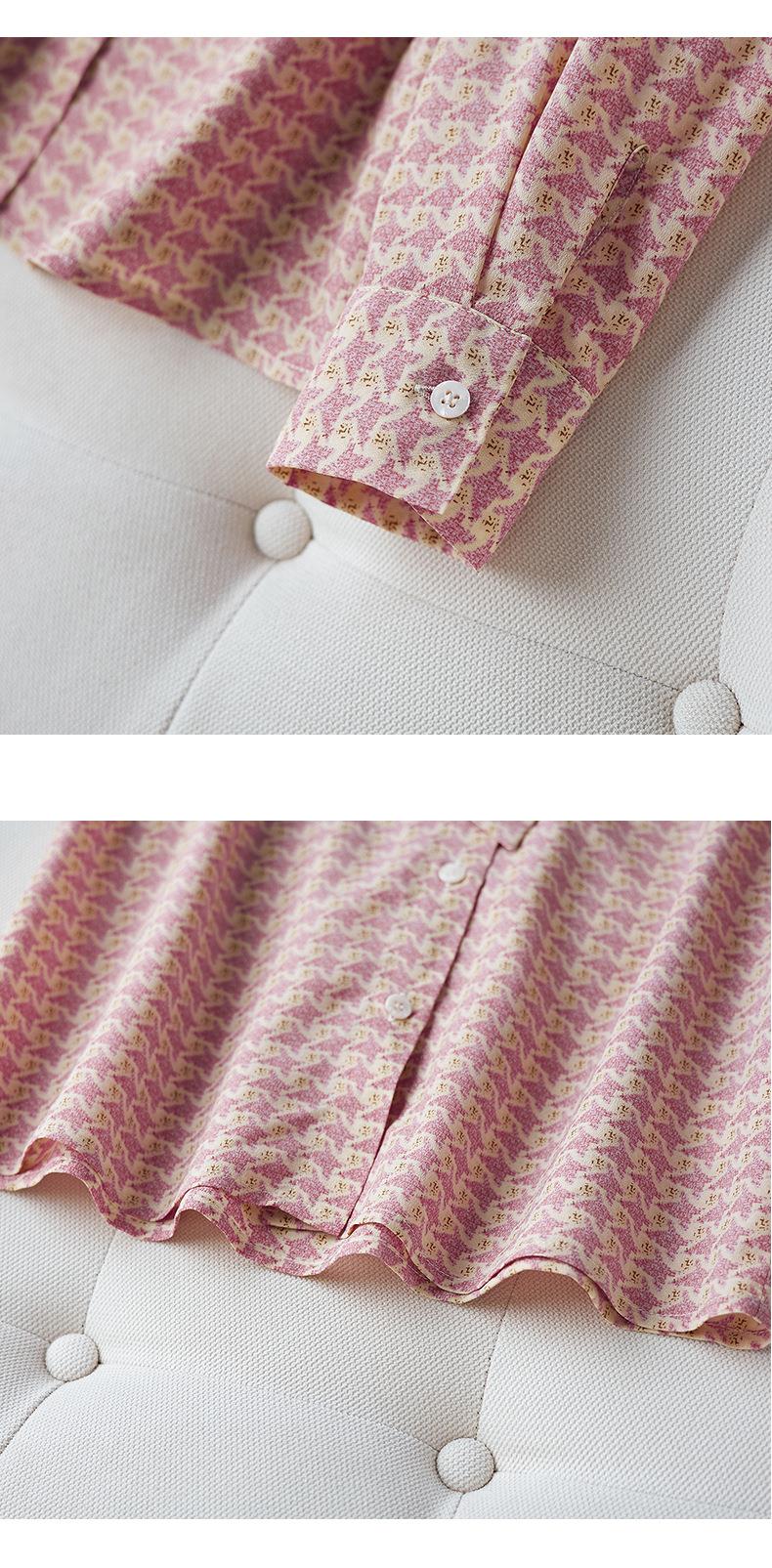 2023秋装新款衬衫女长袖宽松雪纺衫千鸟格女士衬衣A2718