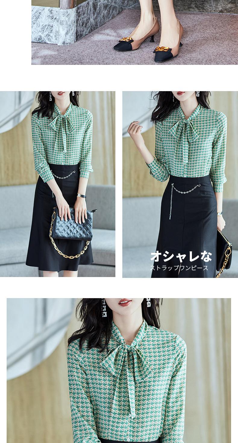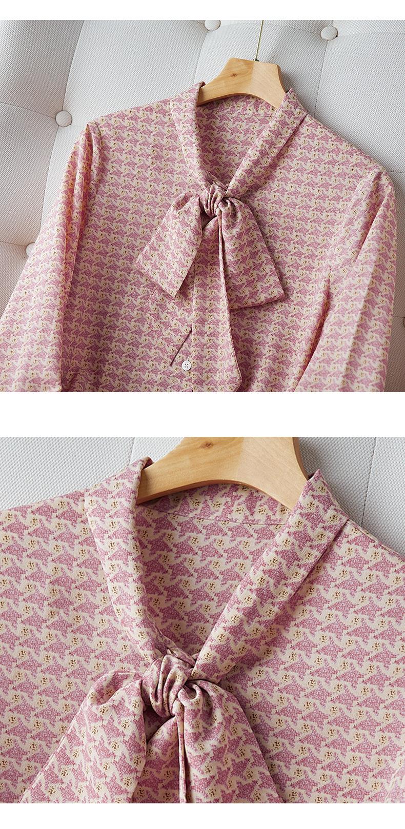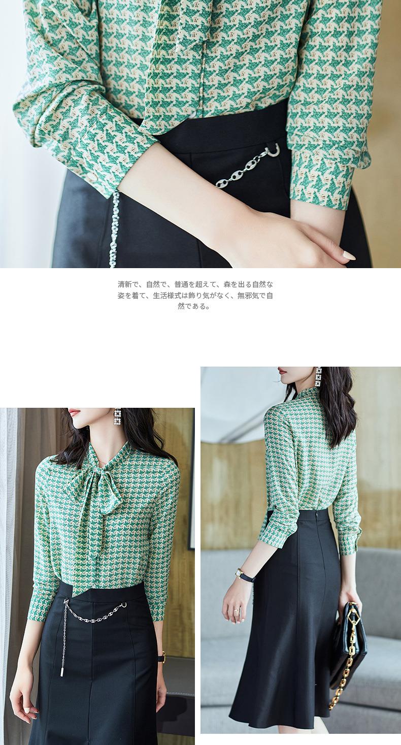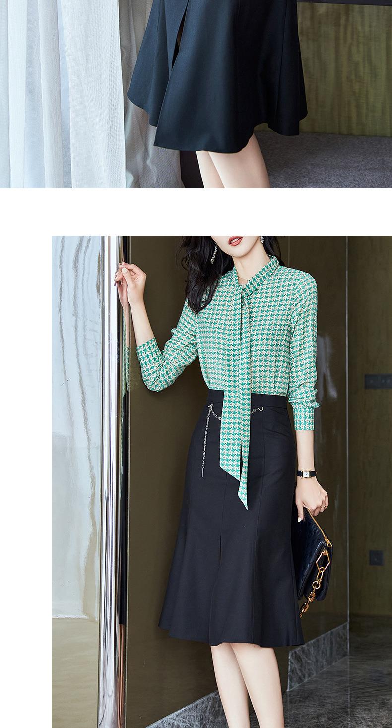 2023秋装新款衬衫女长袖宽松雪纺衫千鸟格女士衬衣A2718