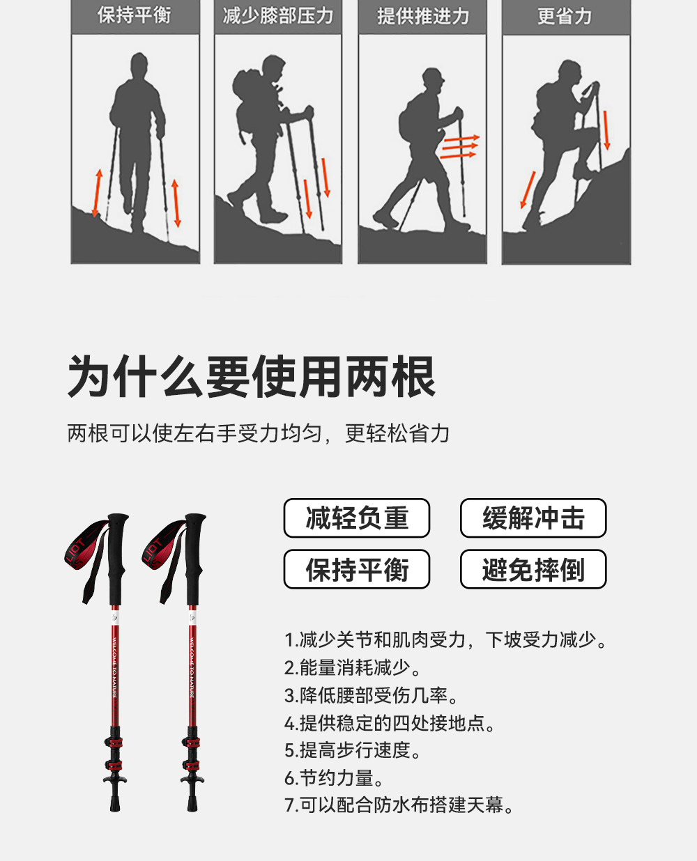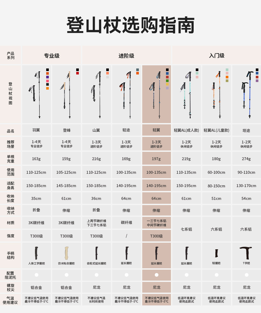 伯希和户外登山杖碳纤维伸缩手杖女款专业爬山装备徒步防滑拐棍男
