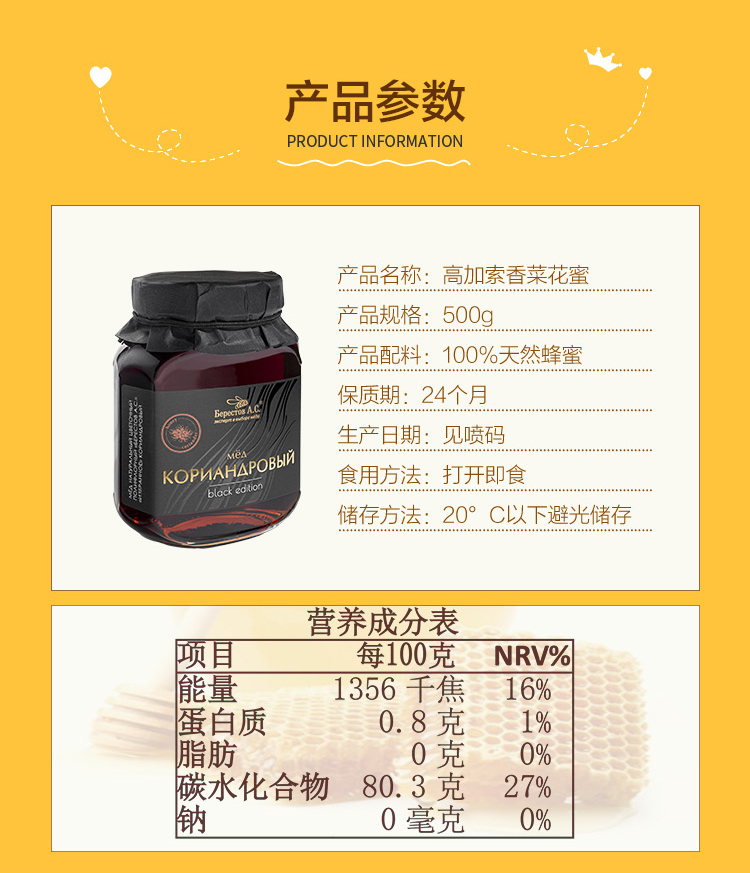 俄罗斯高加索香菜花蜜500g/瓶