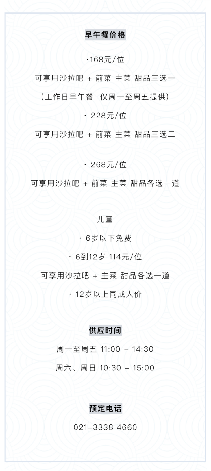 音昱听堂金秋早午餐(节日除外)