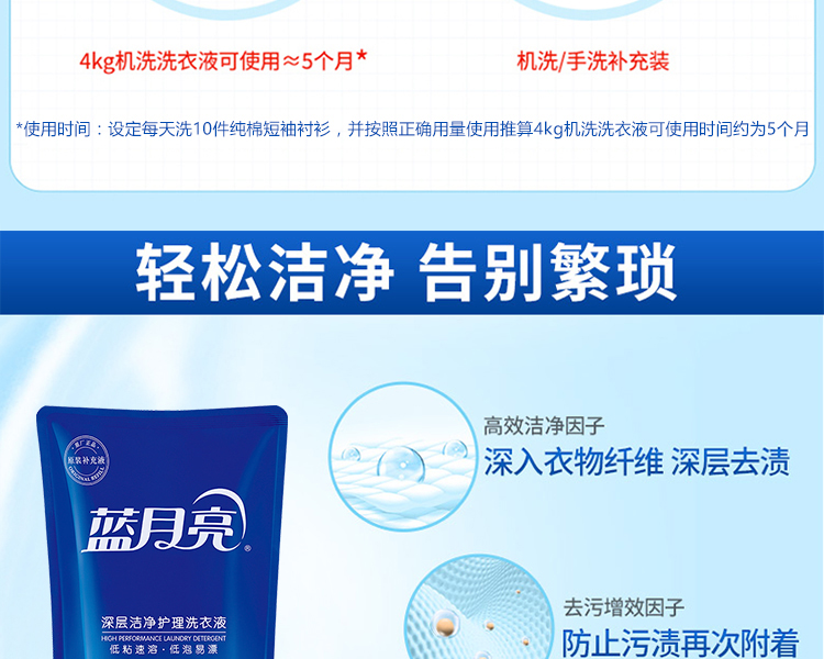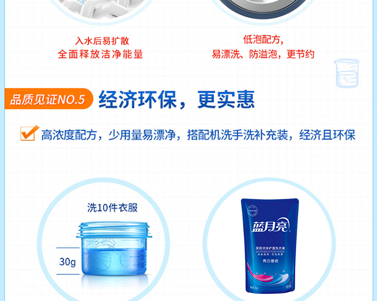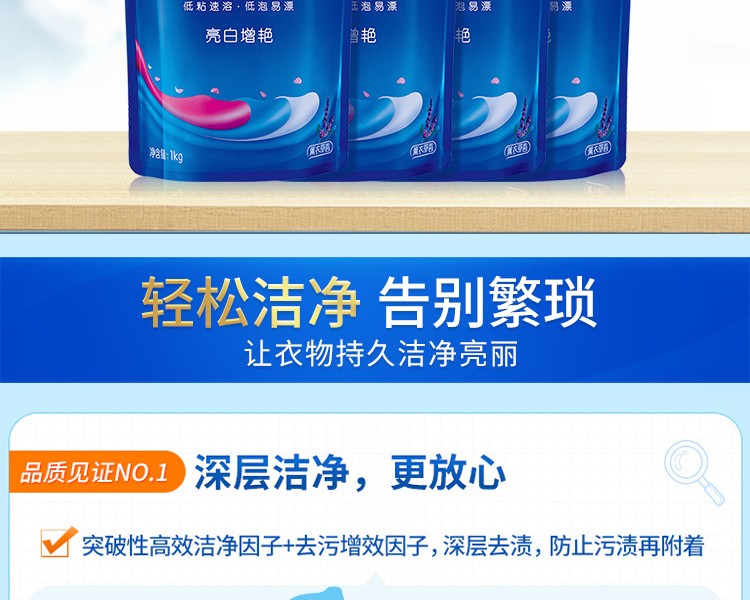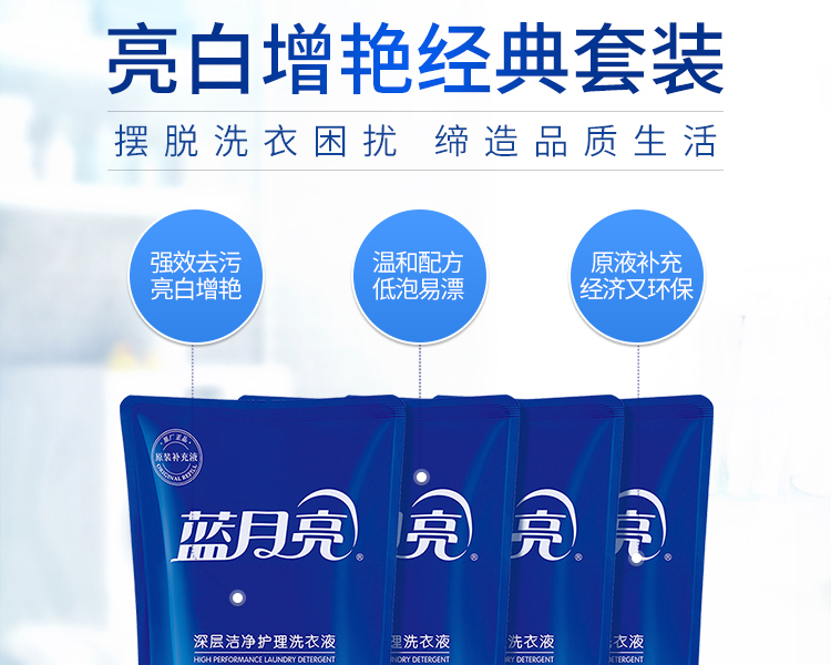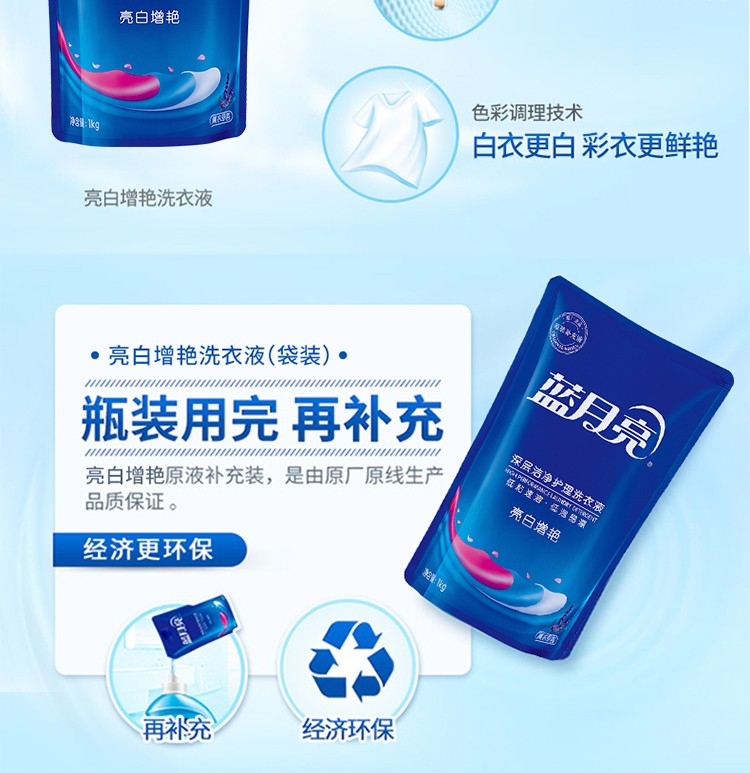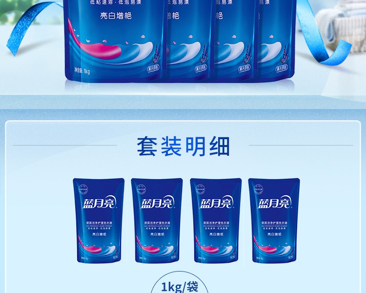 蓝月亮薰衣草亮白增艳洗衣液袋装1kg*4