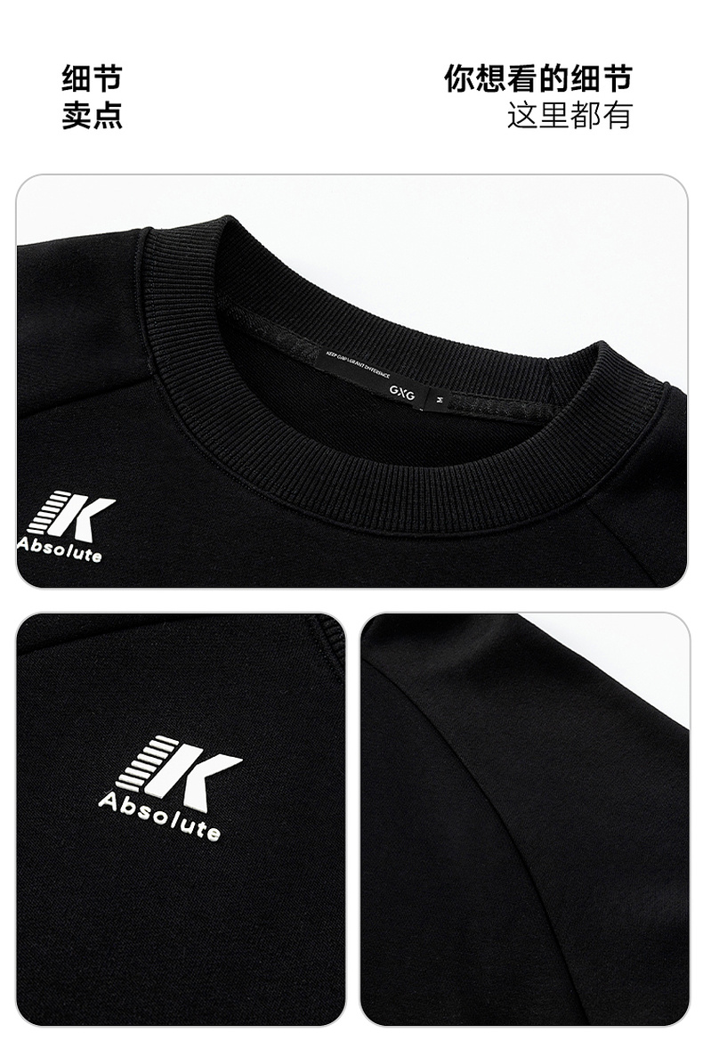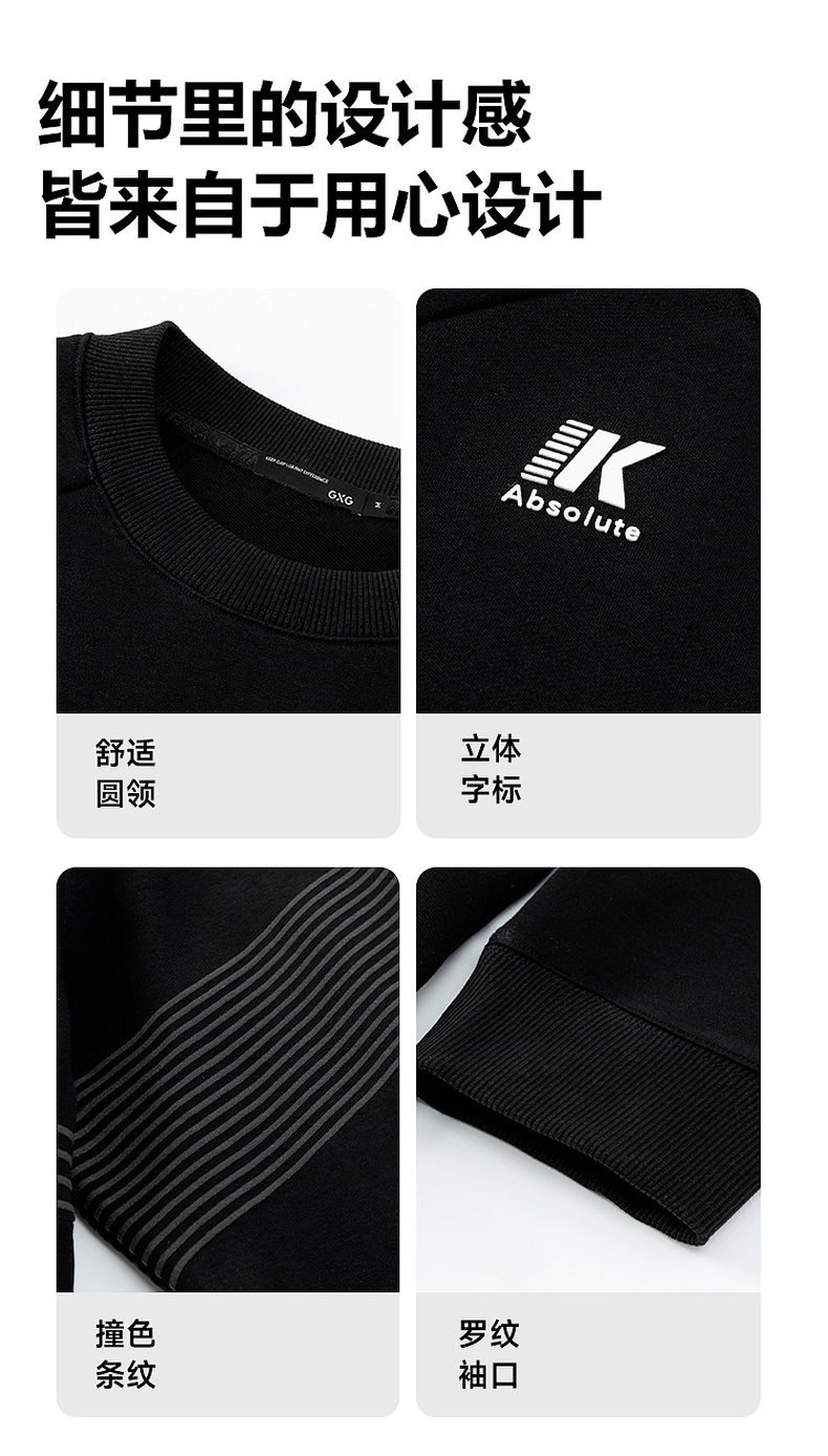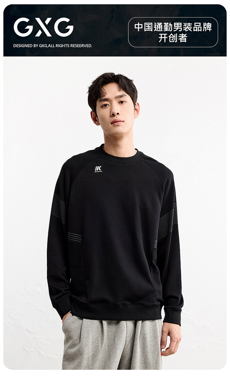 GXG男装25秋季潮流撞色简约百搭舒适休闲户外运动男式圆领卫衣K&C