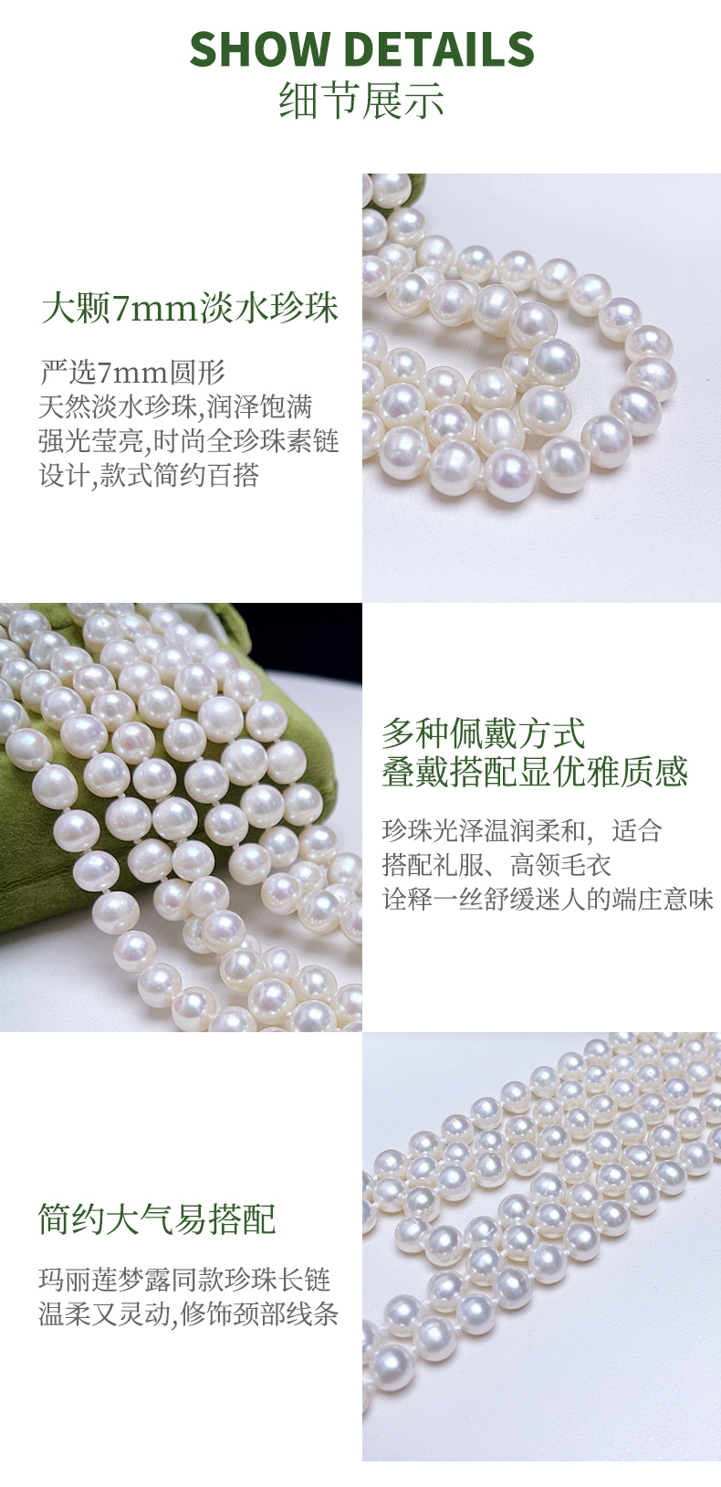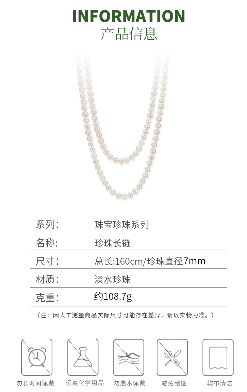 【金靖同款】苏托儿二号天然珍珠项链(7mm,160cm)
