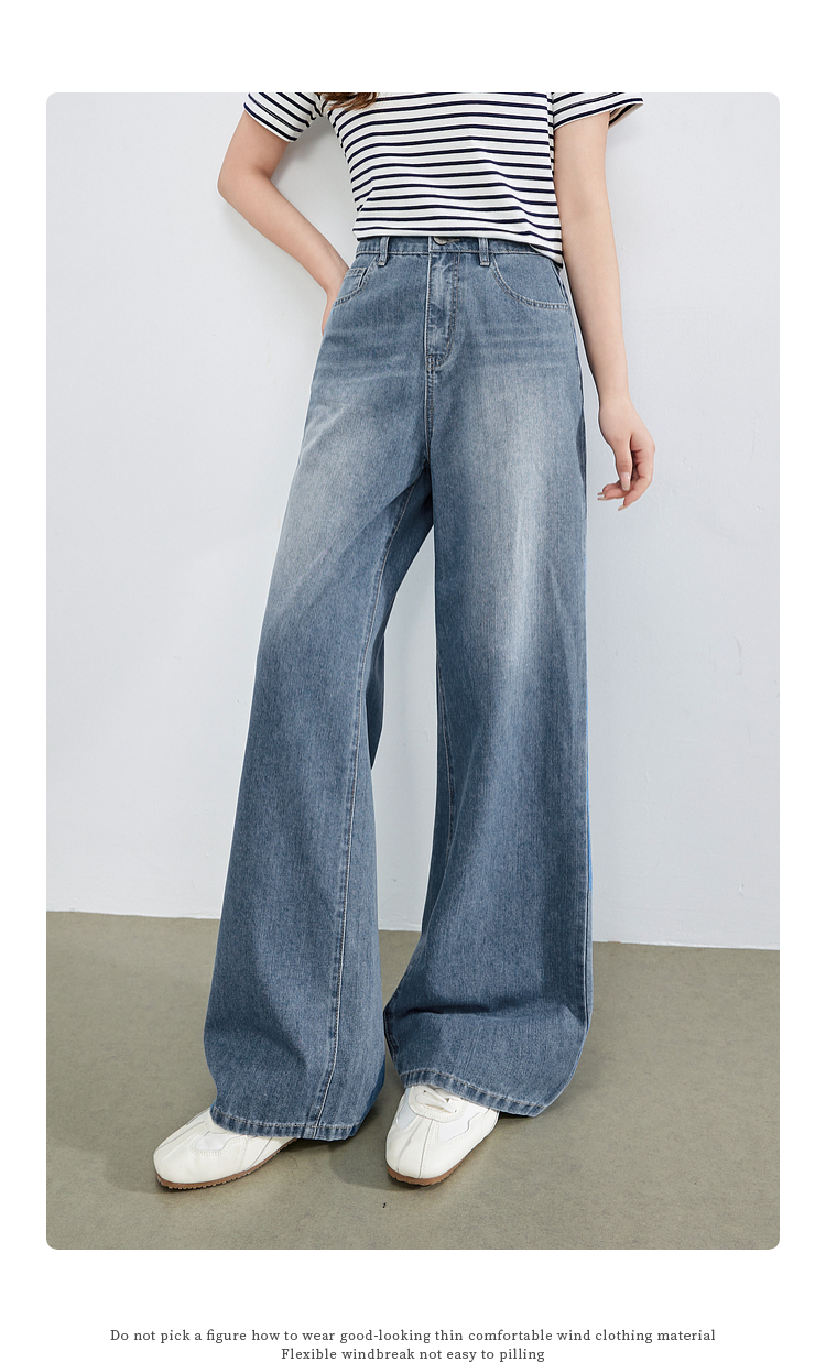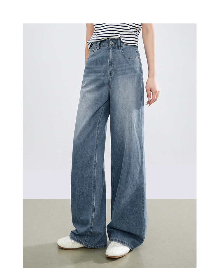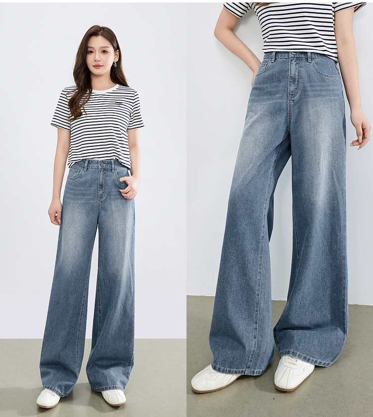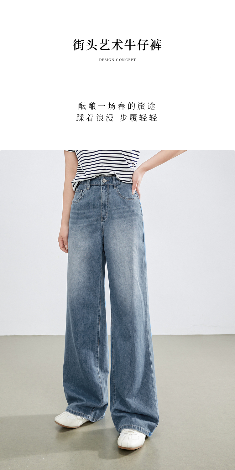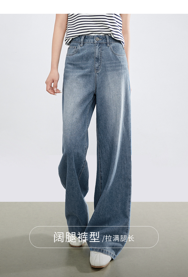 熙世界丹宁牛仔阔腿裤女薄款2025夏季新款宽松百搭复古直筒长裤子