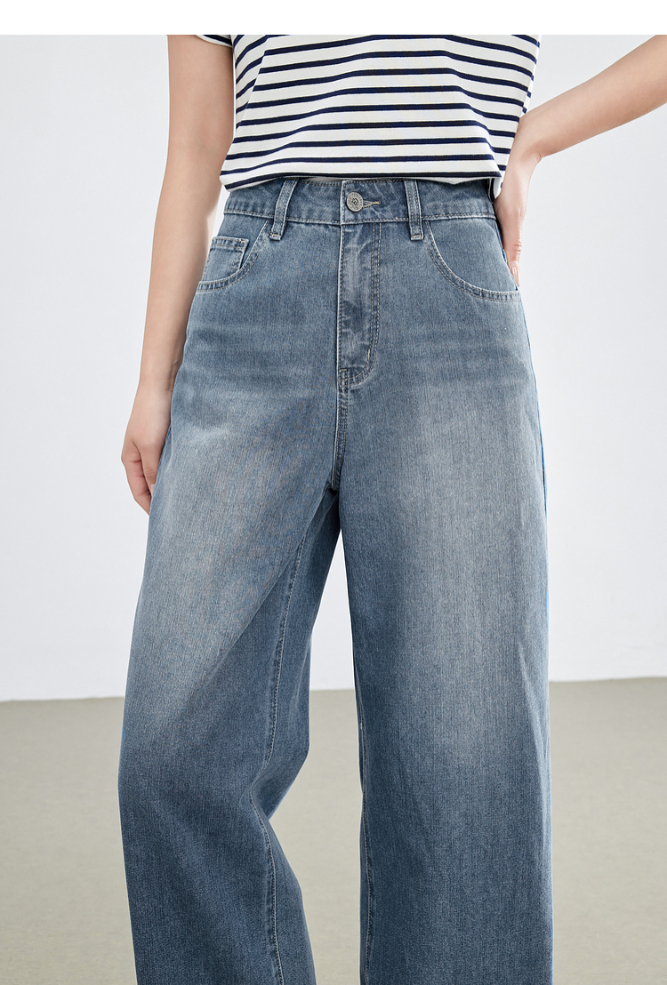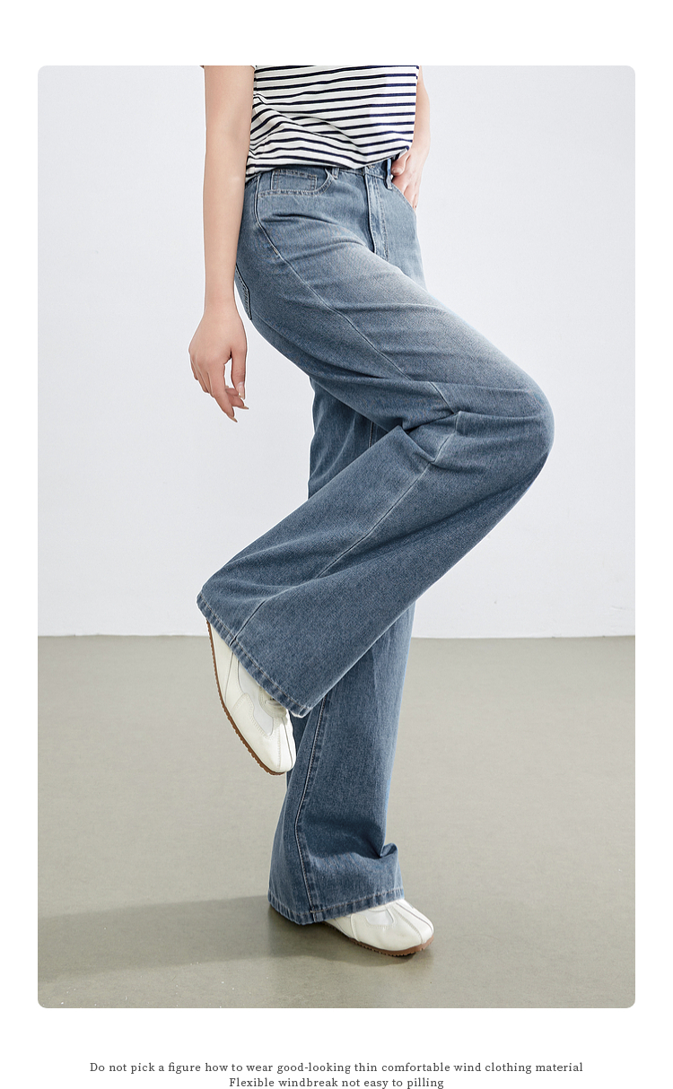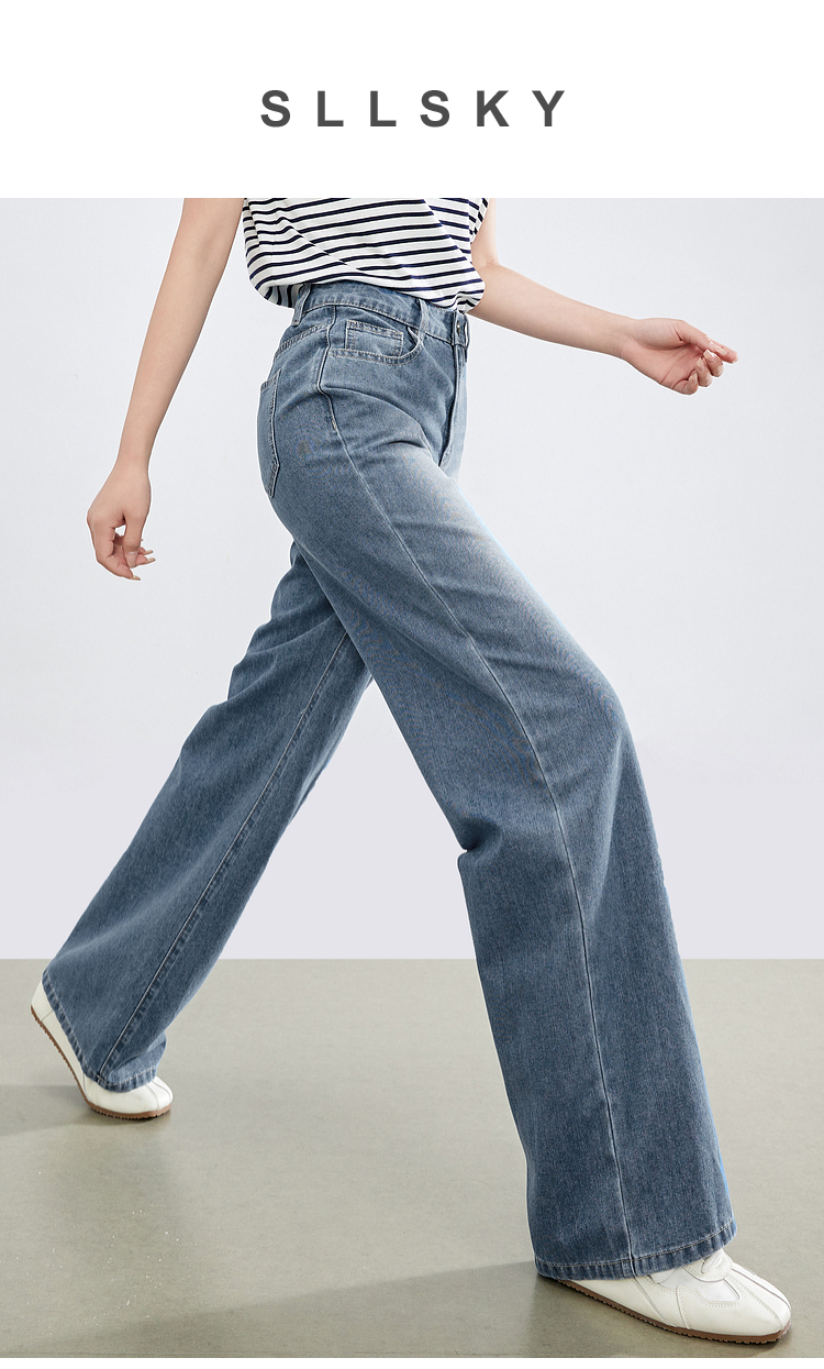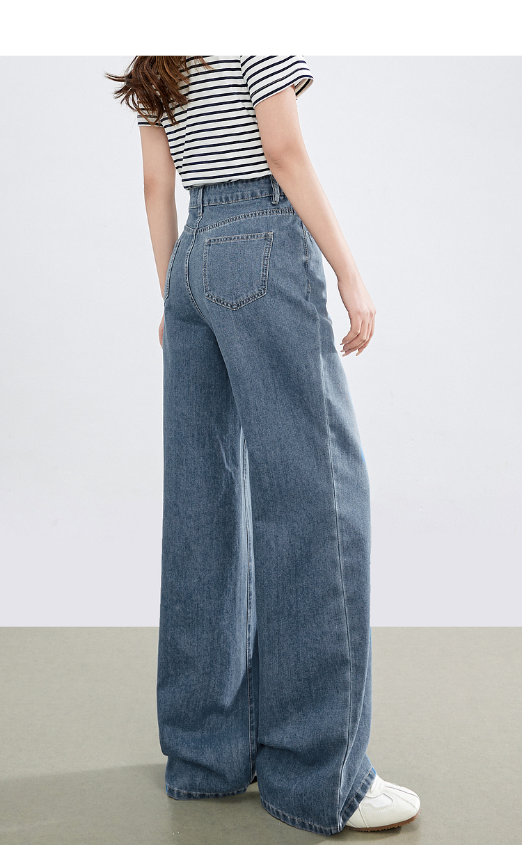 熙世界丹宁牛仔阔腿裤女薄款2025夏季新款宽松百搭复古直筒长裤子