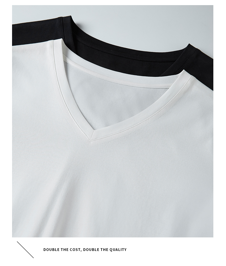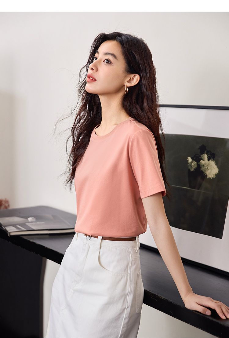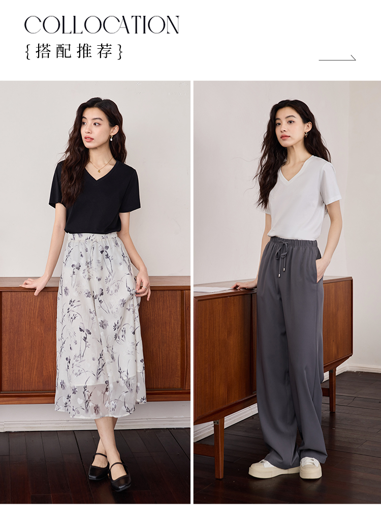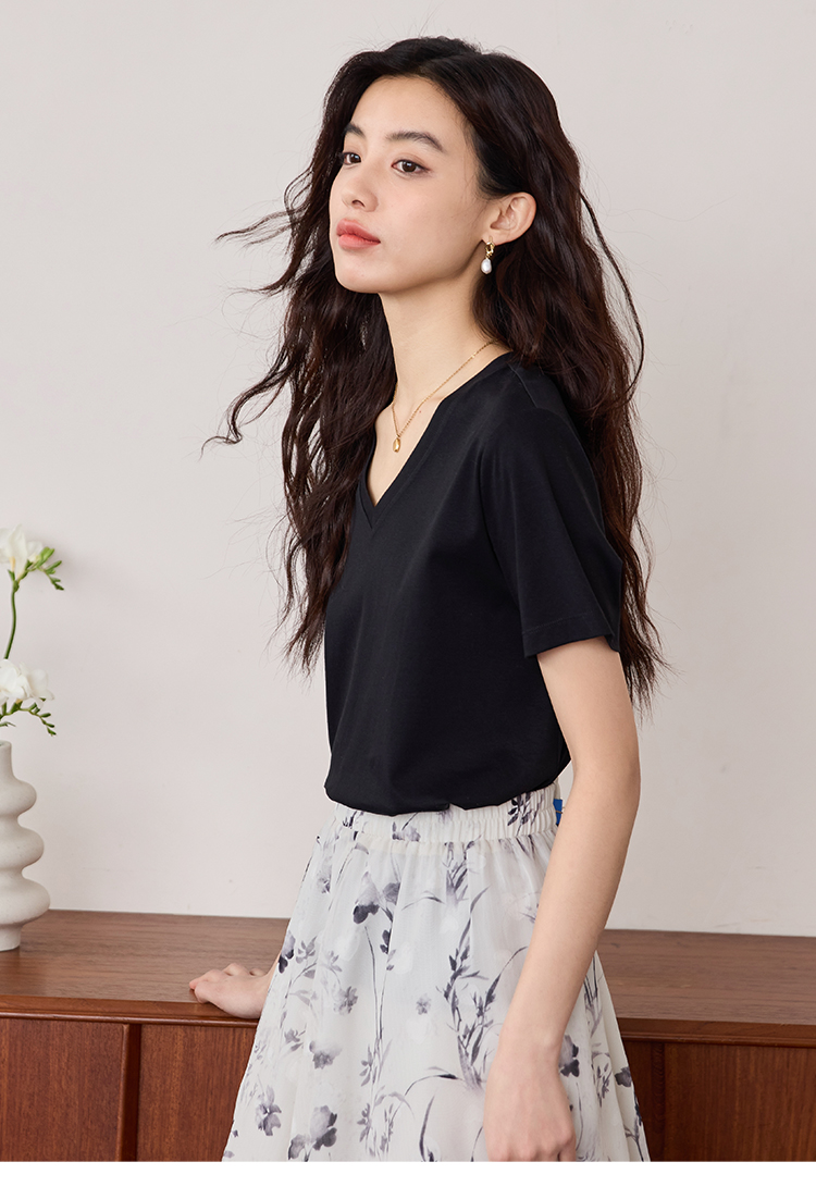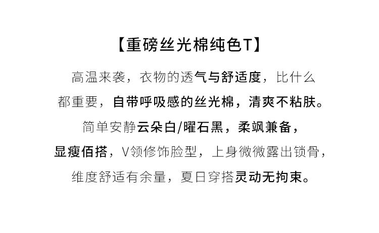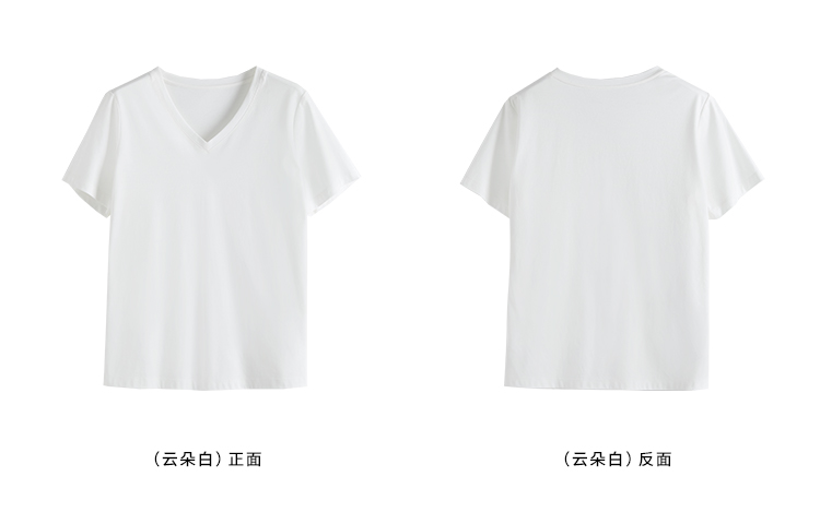 【专属特价】熙世界重磅70s丝光棉t恤女短袖夏简约纯色V领体恤上衣