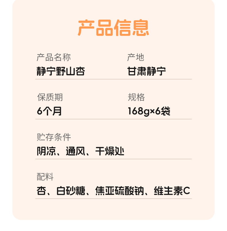 【静宁馆】 静宁野山杏干 高原野山杏 168g/袋
