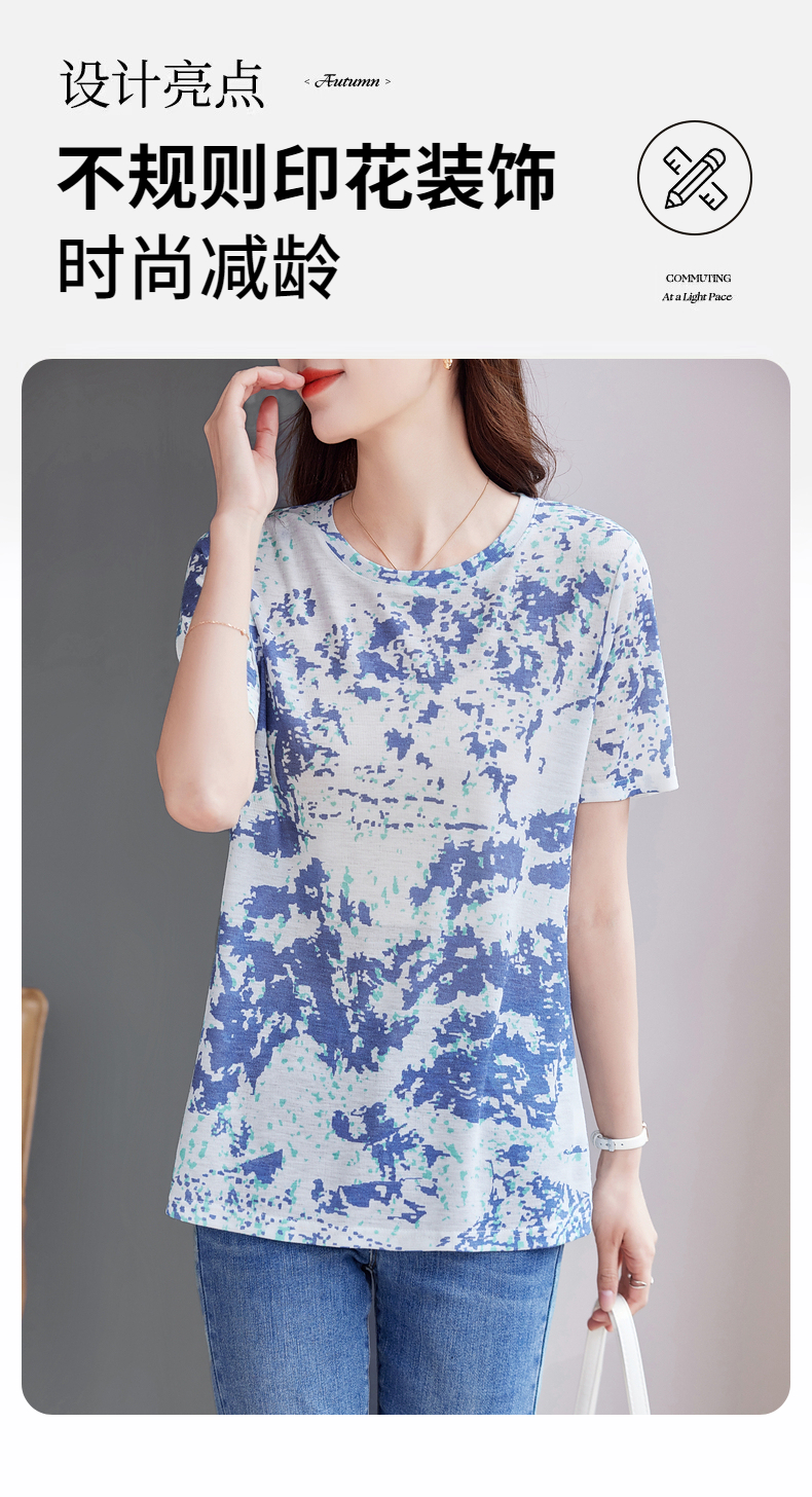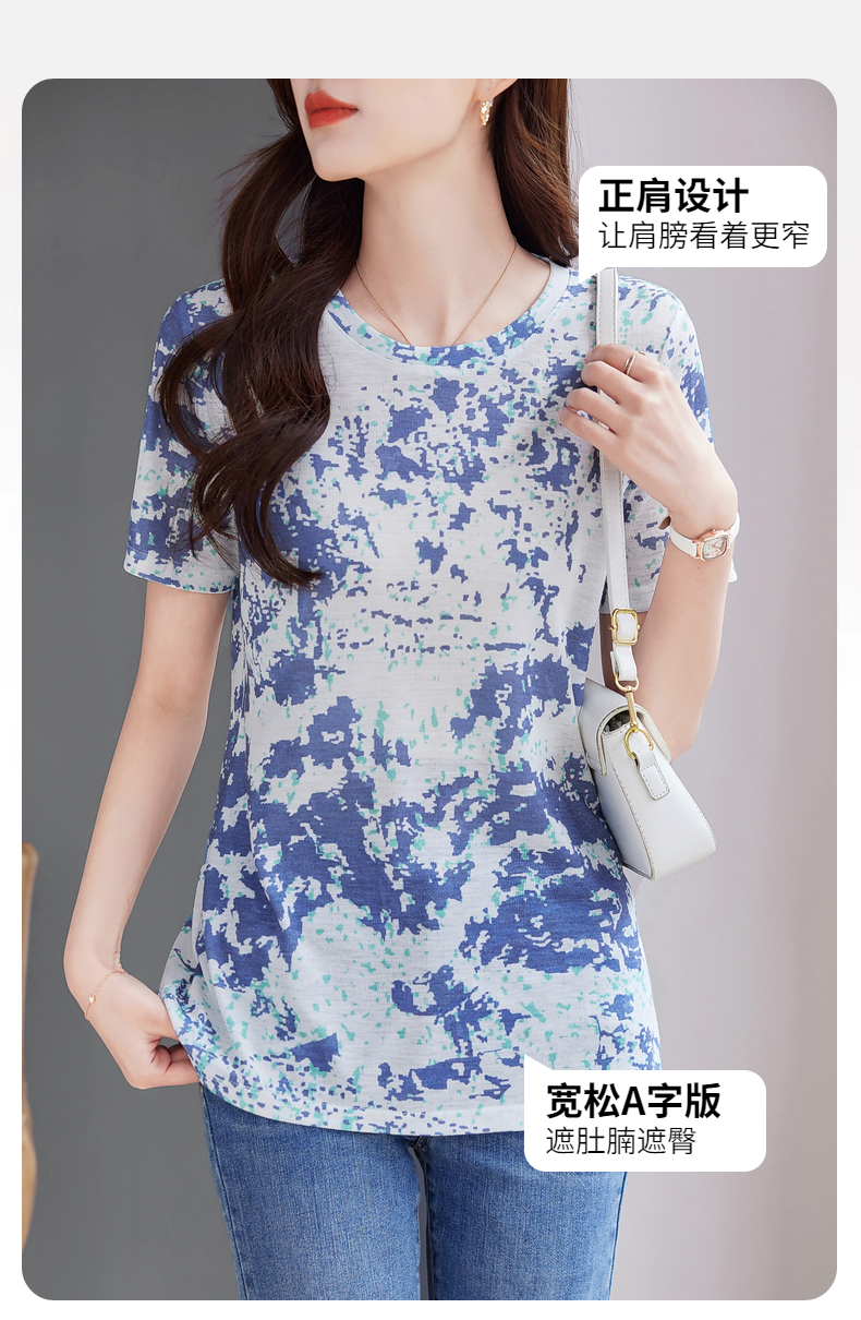 印花短袖t恤女夏2025新款洋气大码女装薄款胖mm宽松显瘦女士上衣