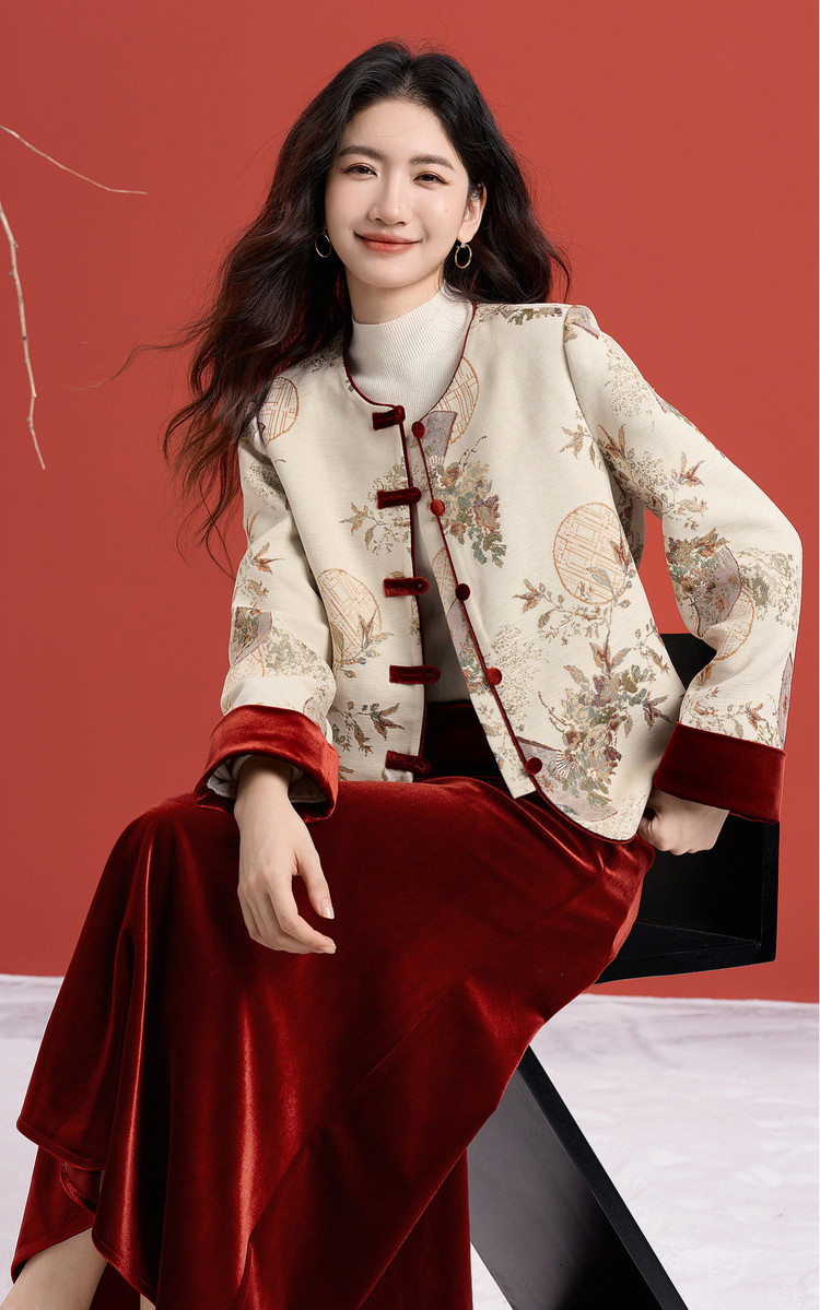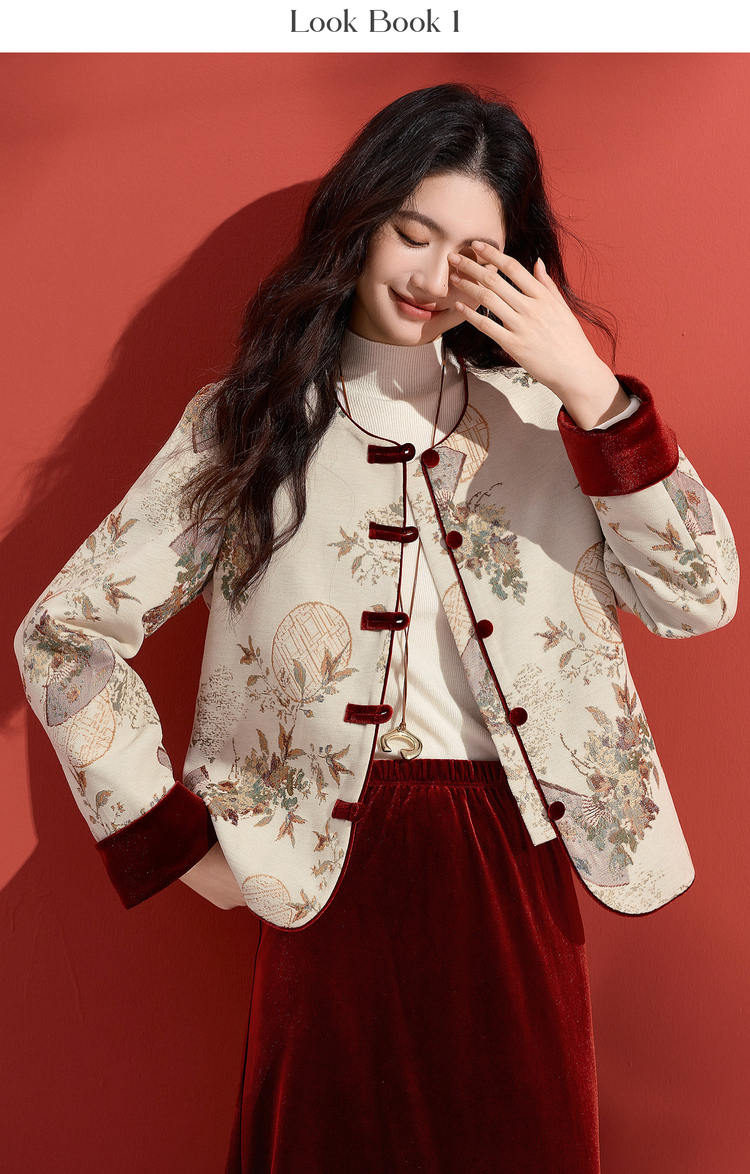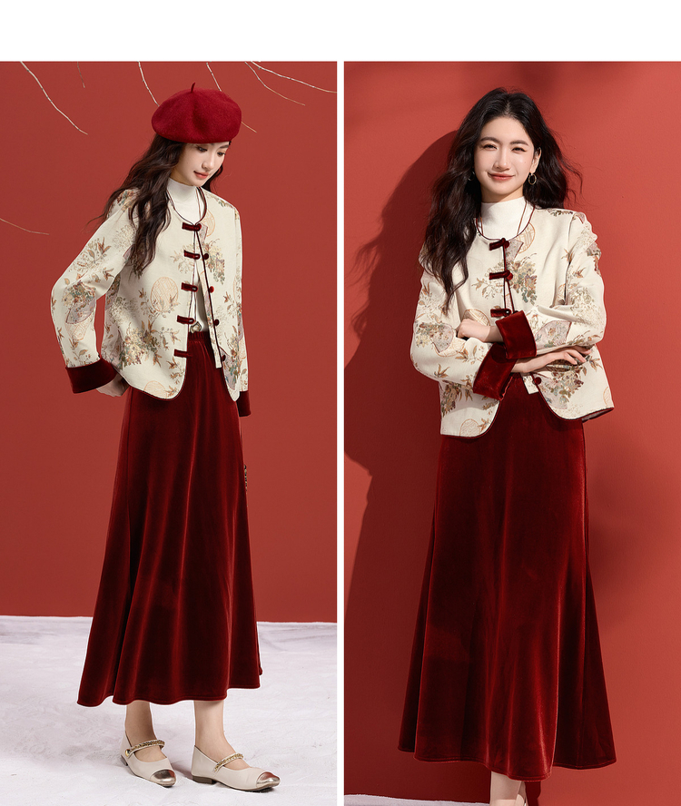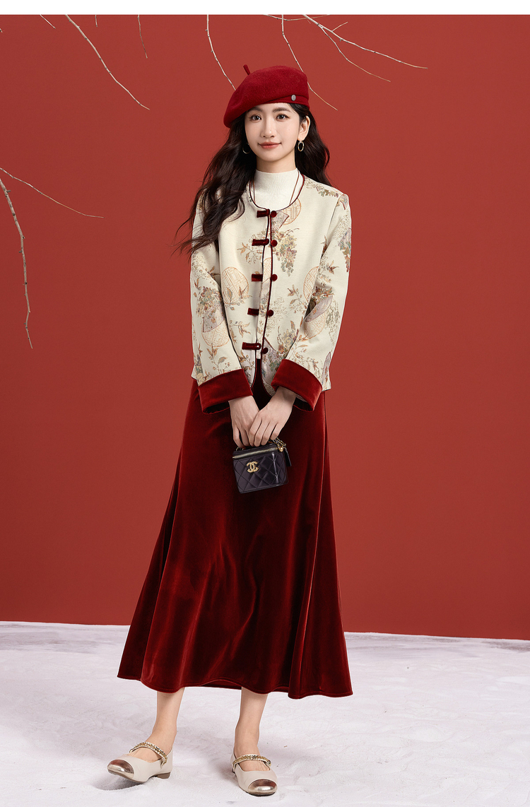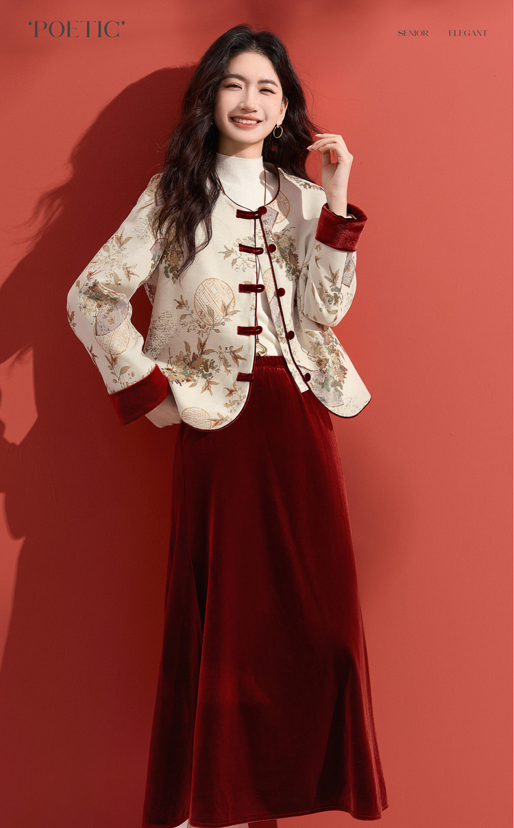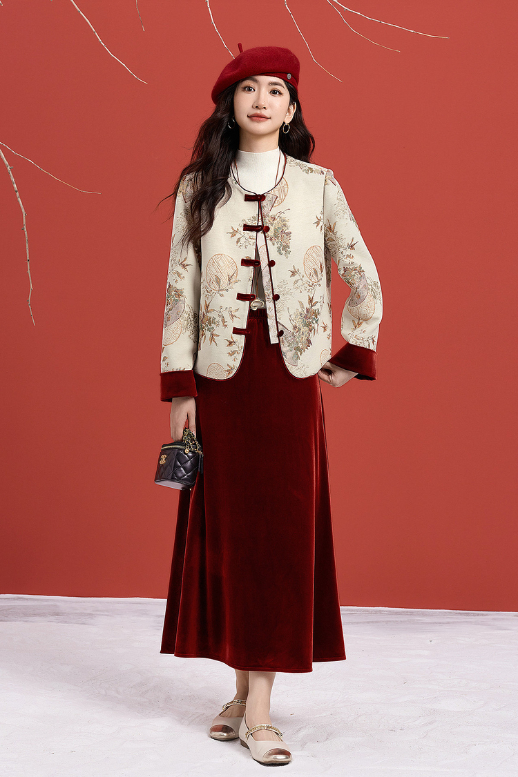 【12/17新品】熙世界【锦绣年华】新中式红色套装女国风短外套丝绒半身裙两件套