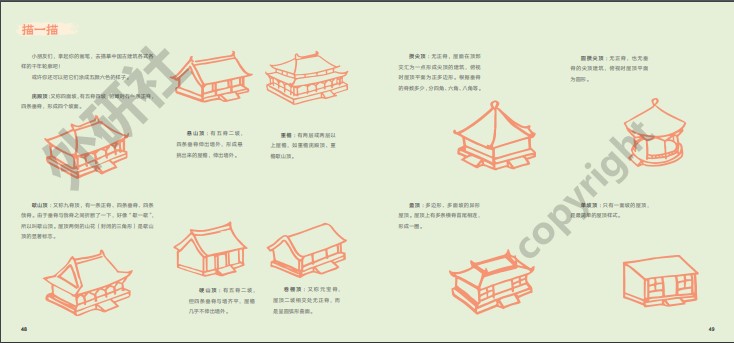 讲到住宅,孩子会看到古代文人只住茅草屋,却仍乐得抚琴,明白《论语》里说的“一箪食,一瓢饮,在陋巷,不改其乐”的高雅之风。