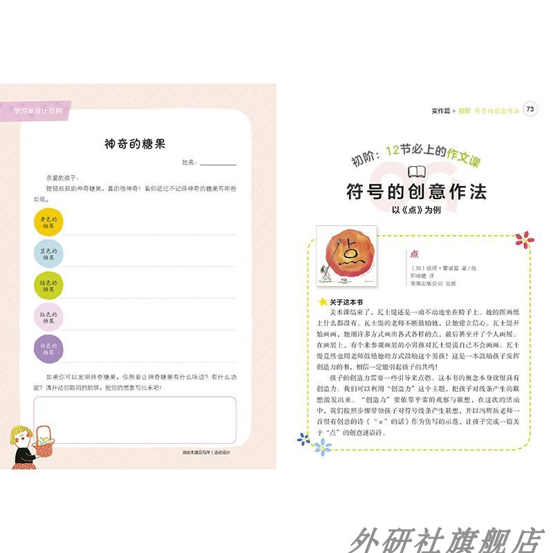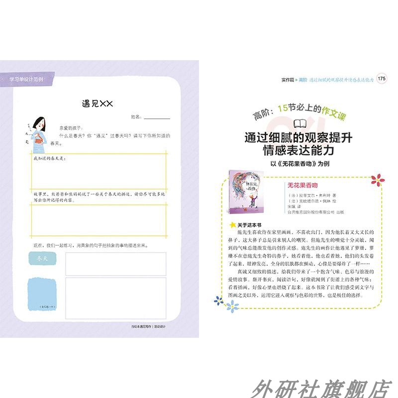 为了不让我的作文教学指导书变得废话连篇,所以我试图跳出过去作文教学指导书的方式,从教措辞开始,用文学作品作为阅读的起点,通过分析作家的文章,引导孩子进行思考、仿写与创作等。这与一般从文体或是思维导图开始进行的作文教学指导书有很大的不同。