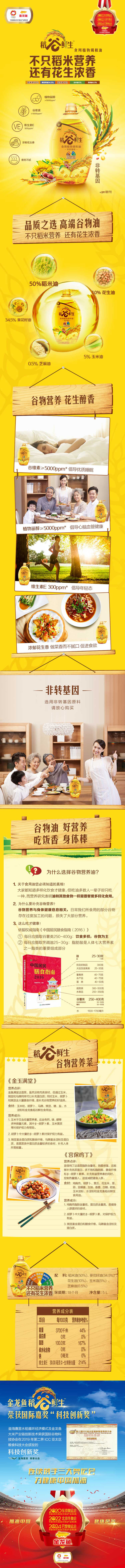 【疫情管控地区停发】金龙鱼稻谷鲜生食用植物调和油5L