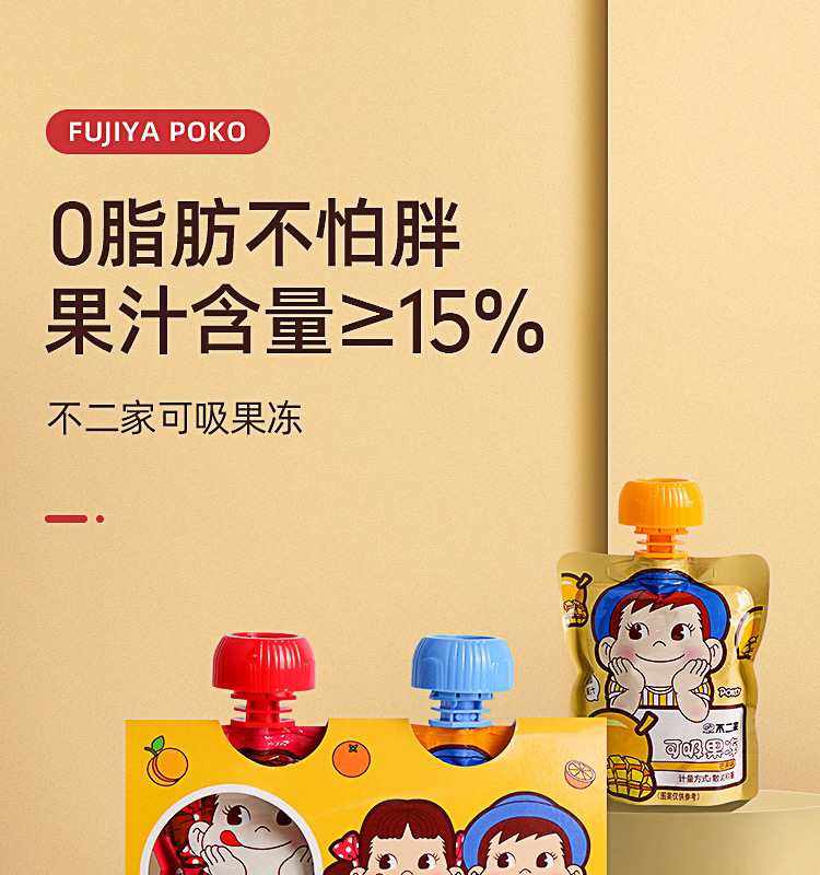 不二家吸吸果冻果汁可吸布丁休闲食品代餐无0脂儿童健康添加零食