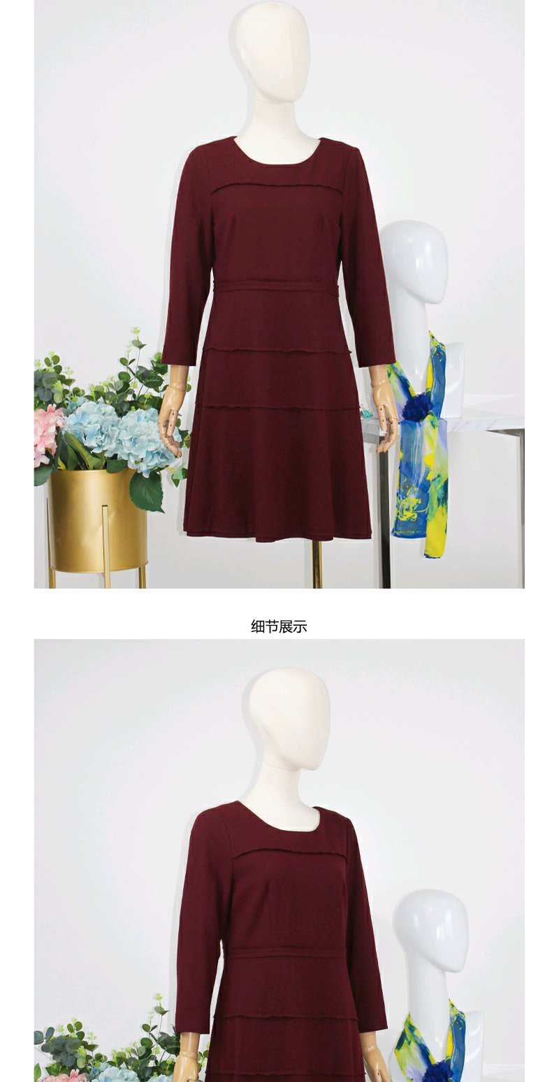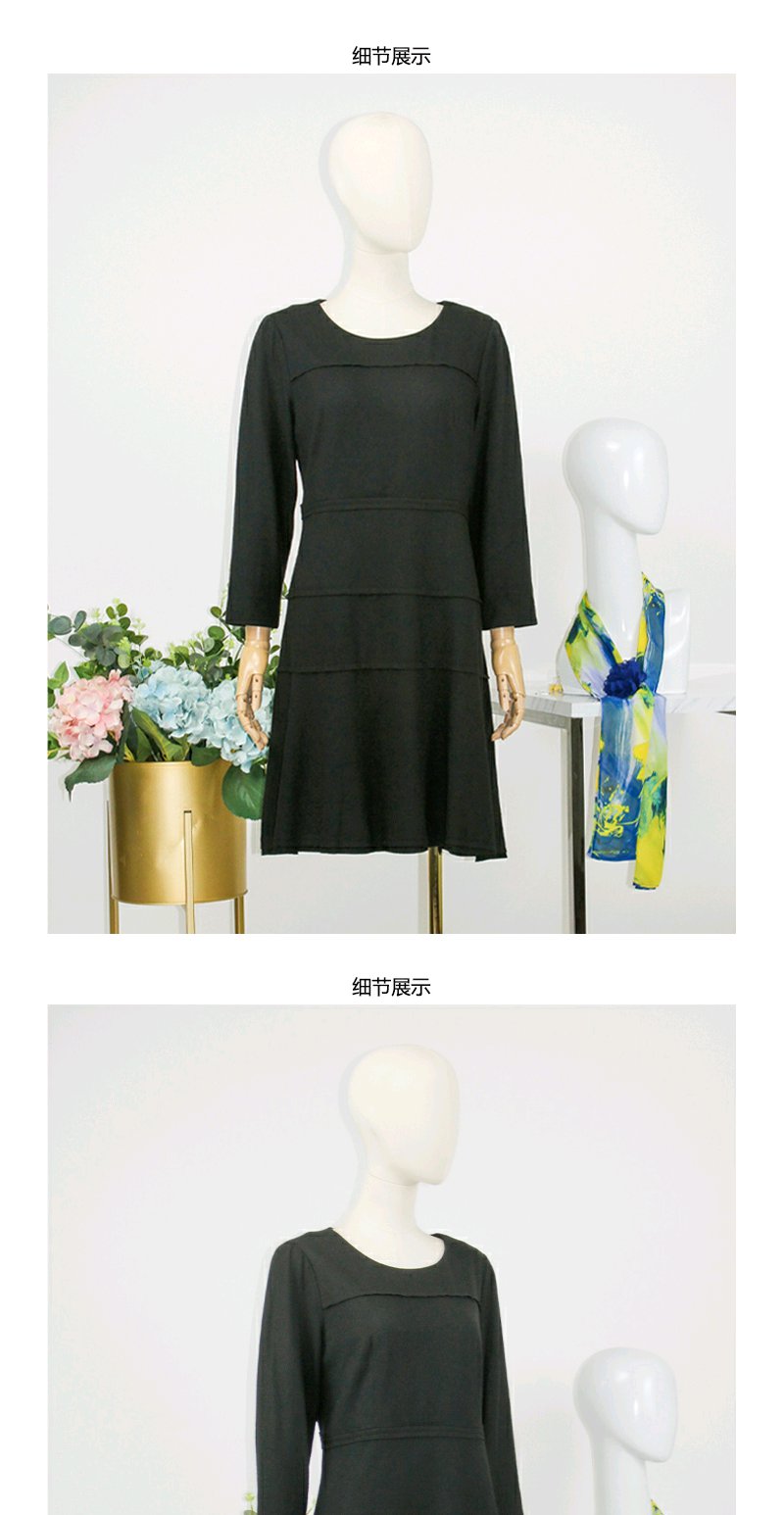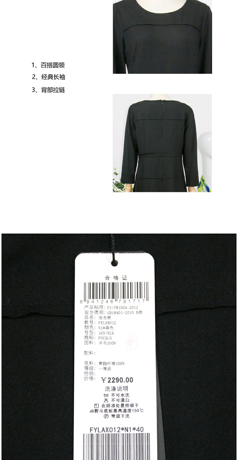 FOCALS福柯斯秋冬季羊毛针织套头圆领七分袖修身连衣裙FYLAX012
