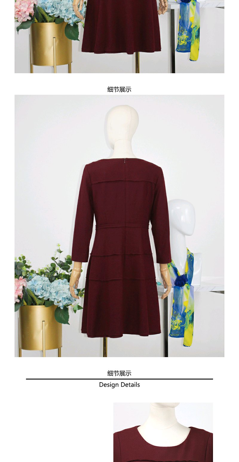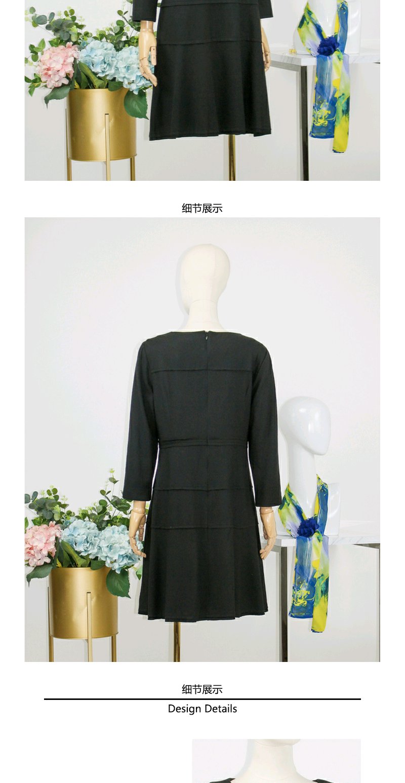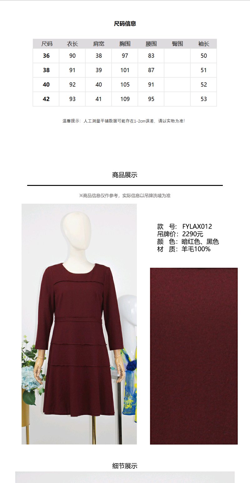 FOCALS福柯斯秋冬季羊毛针织套头圆领七分袖修身连衣裙FYLAX012