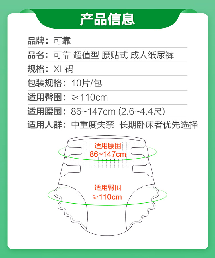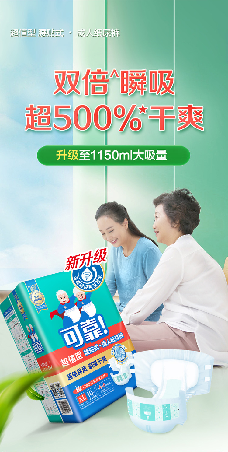 可靠夜用加强型成人纸尿裤男女老人尿不湿加厚M/L/XL单包10片