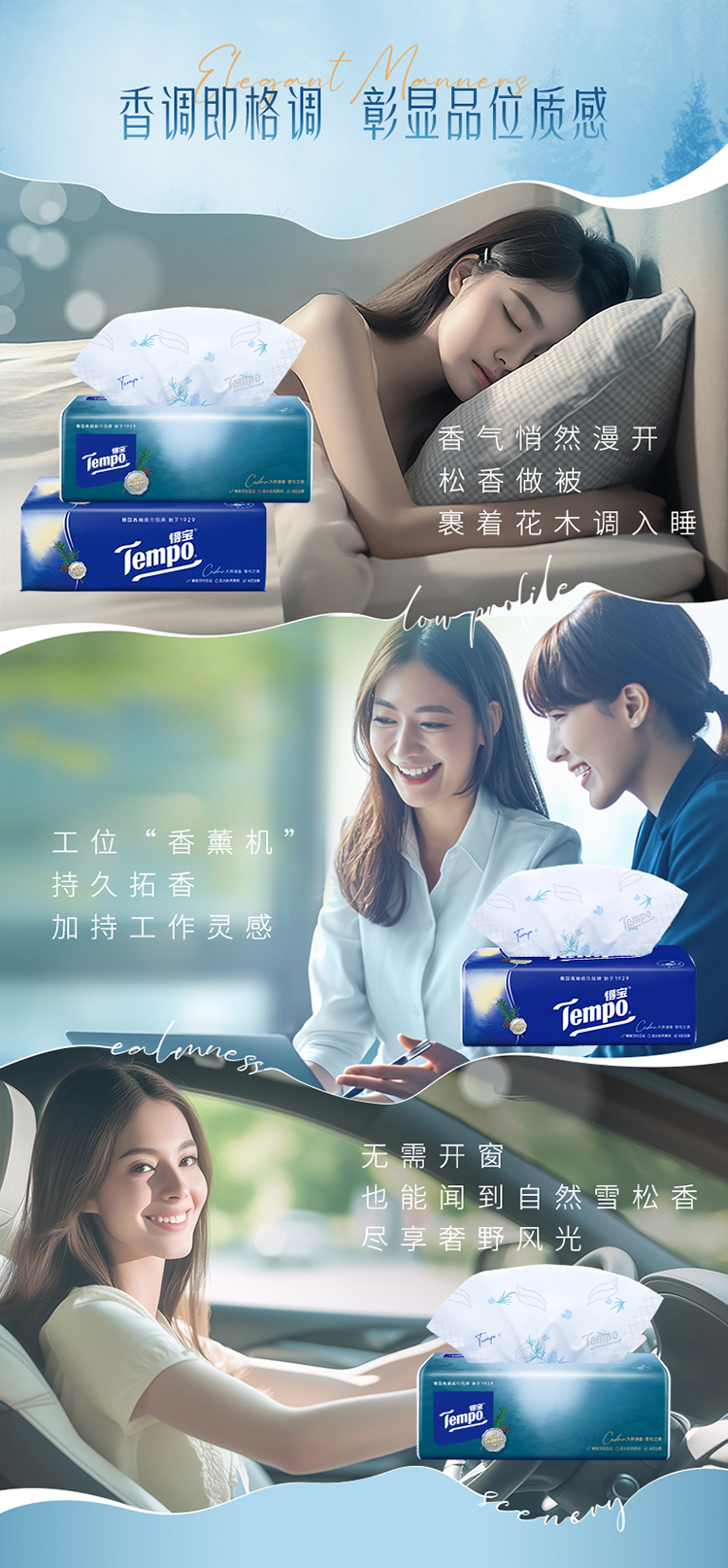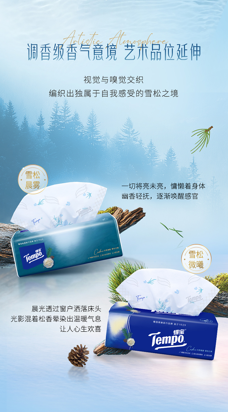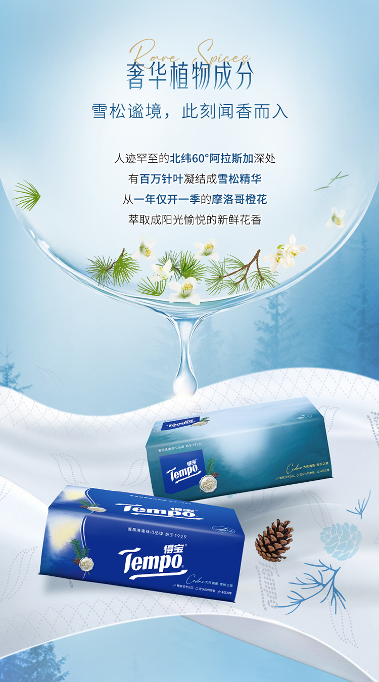 『Tempo得宝』雪松高级香得宝抽纸4层加厚90抽4包餐巾纸软抽纸巾家用面巾纸(新旧包装随机发)