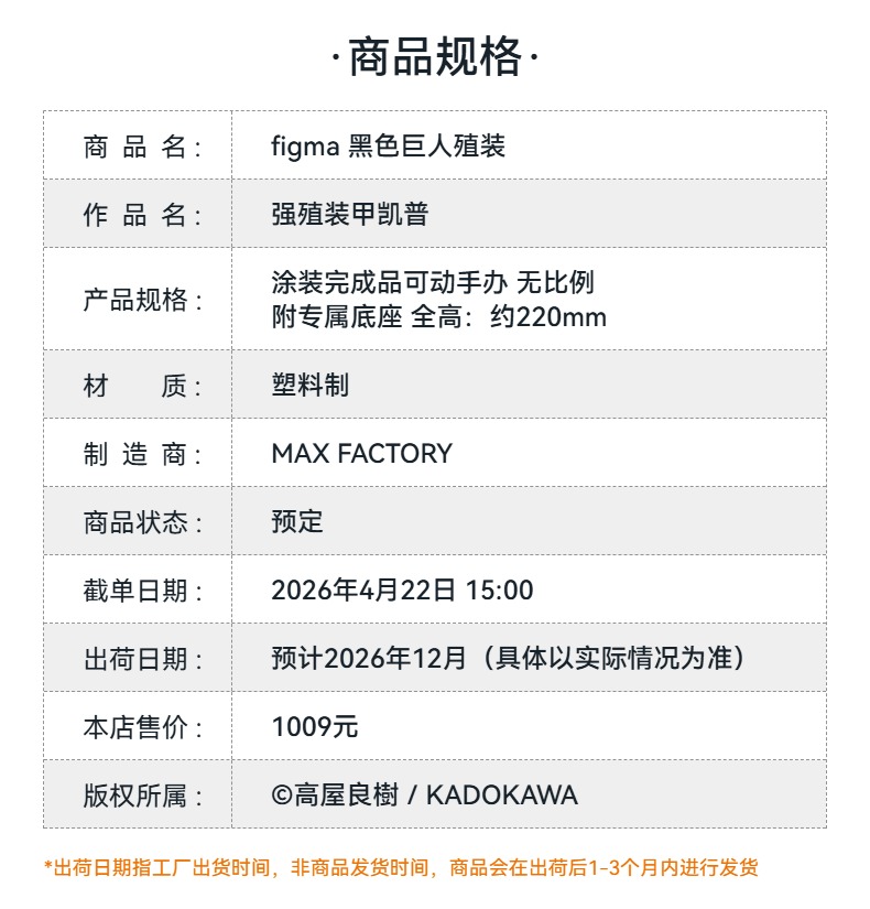【GSC预售定金】figma 黑色巨人殖装 强殖装甲凯普 手办模玩