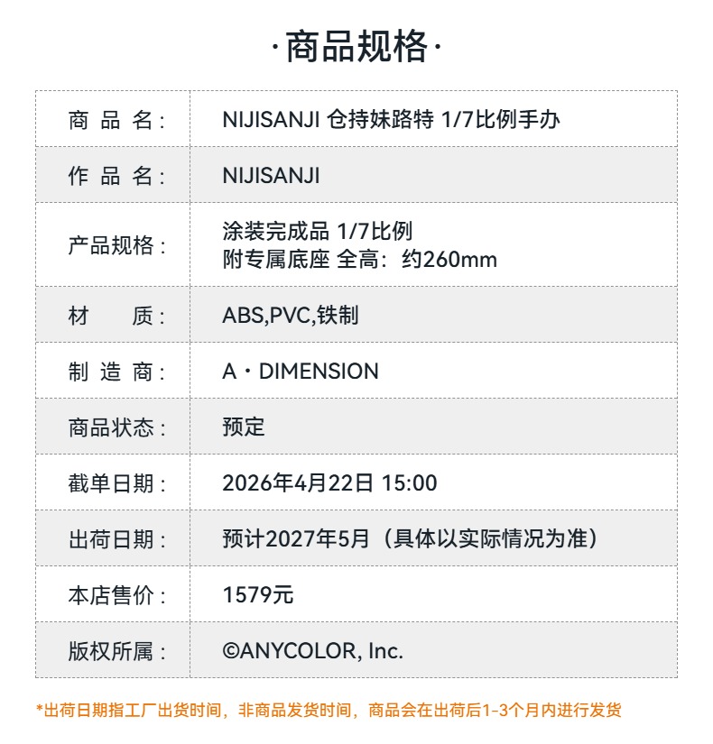 【GSC预售定金】1/7标准比例 NIJISANJI 仓持妹路特 手办模玩